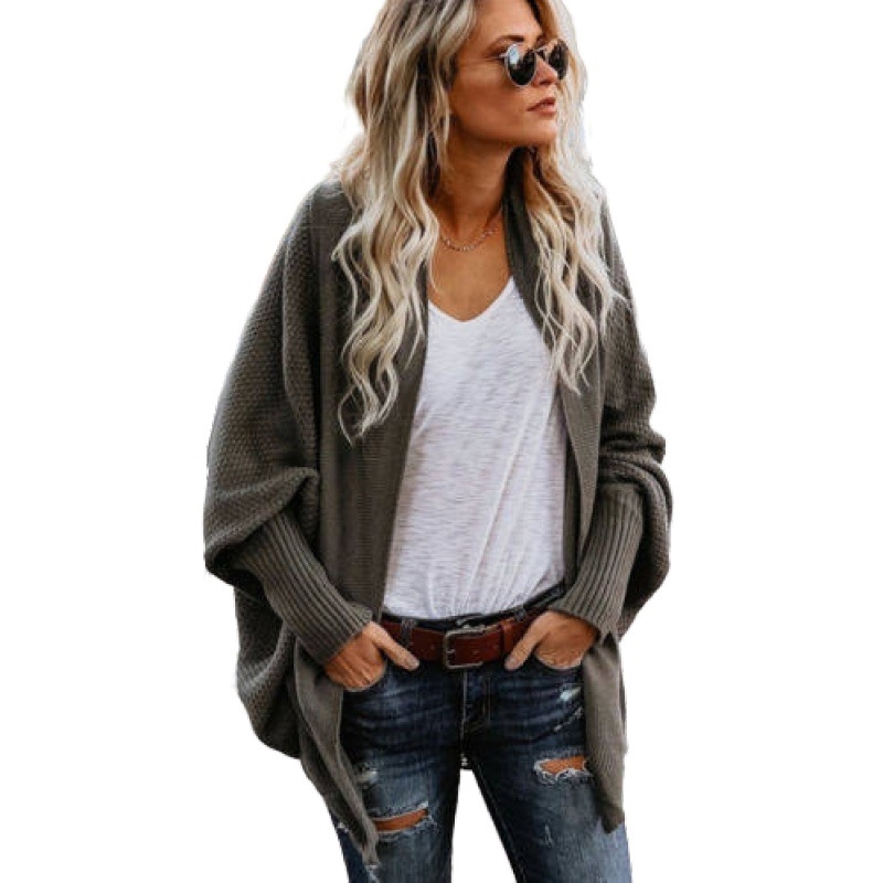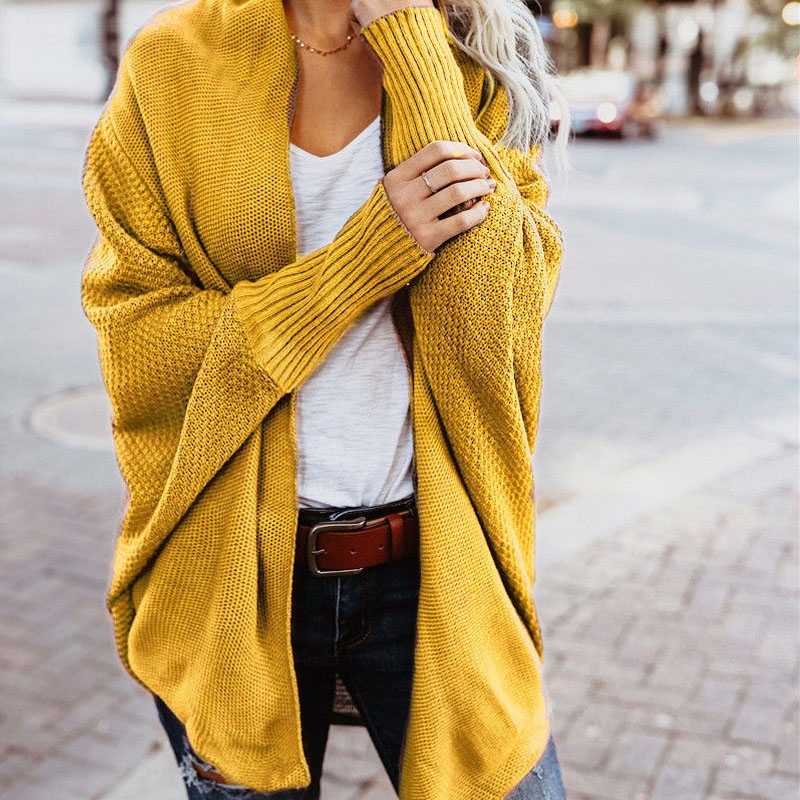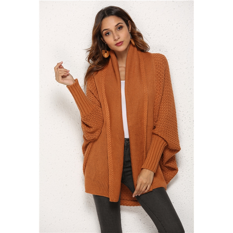 Solid Color Batwing Sleeves Casual Loose Knitted Cardigan