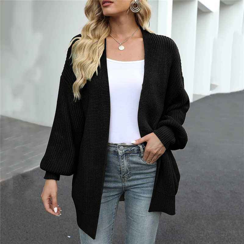 Ladies Loose Balloon Sleeve Long Sleeve Knit Cardigan