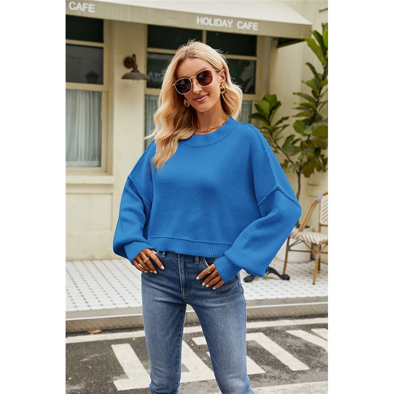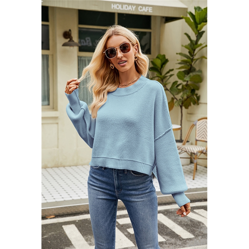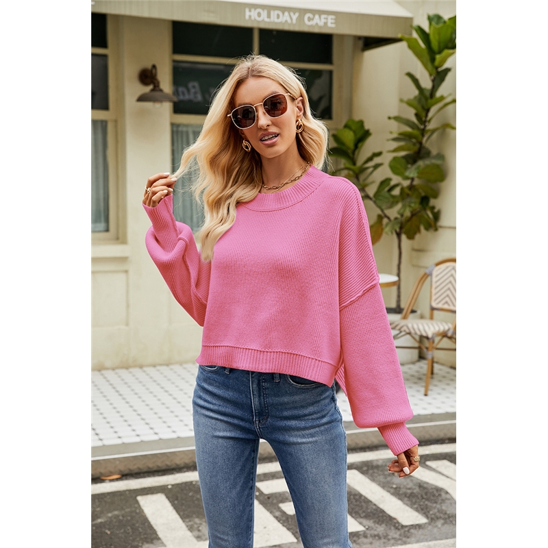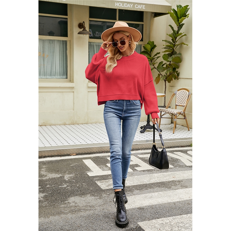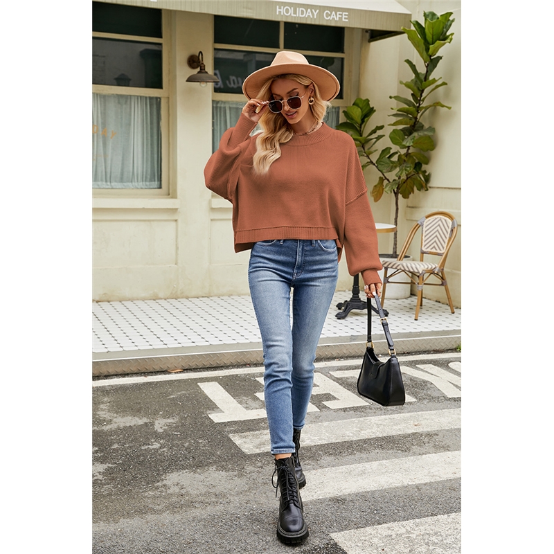 Long Sleeves Crewneck Casual Loose Short Knitted Sweater