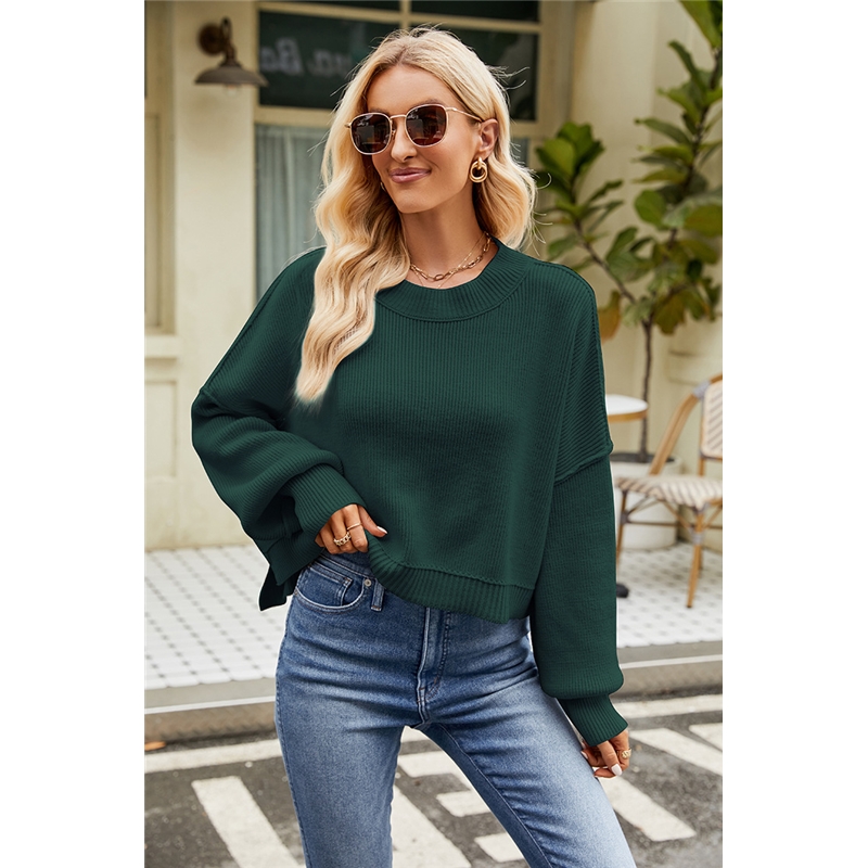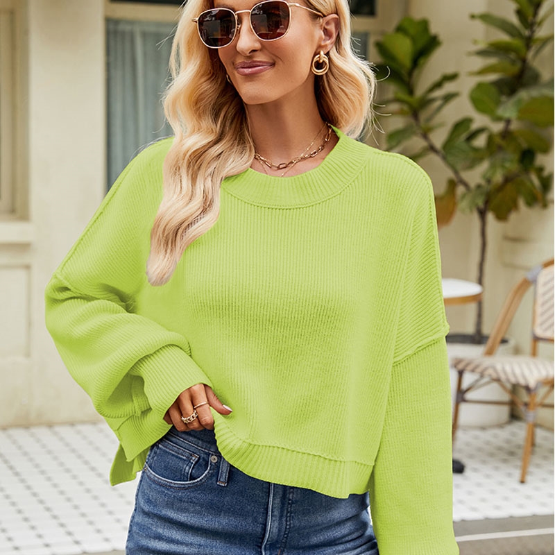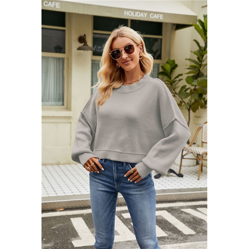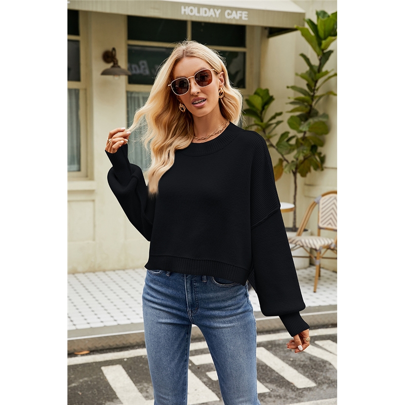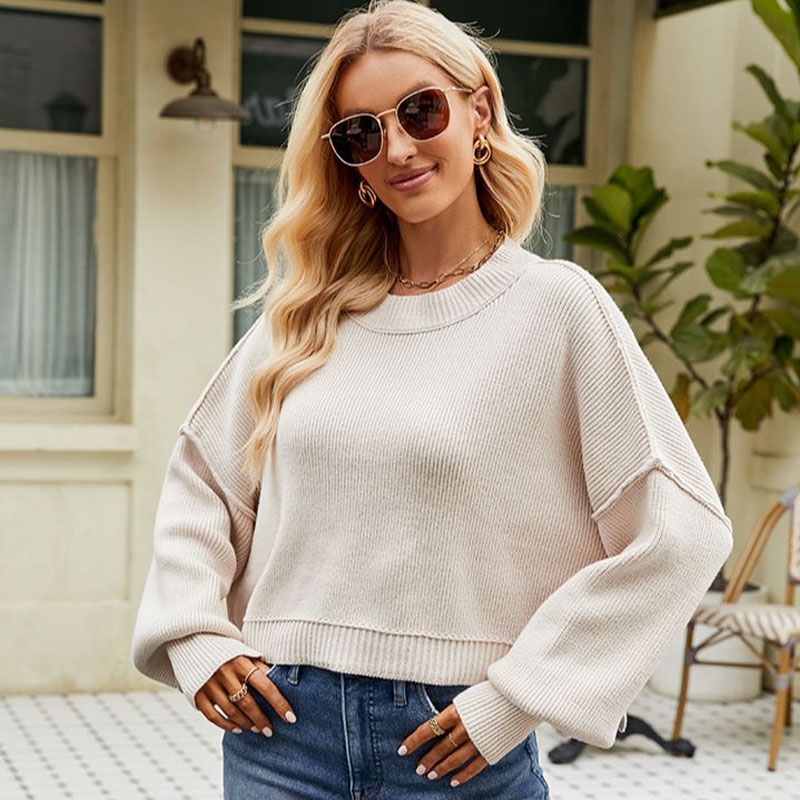 Long Sleeves Crewneck Casual Loose Short Knitted Sweater