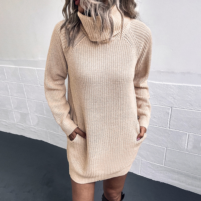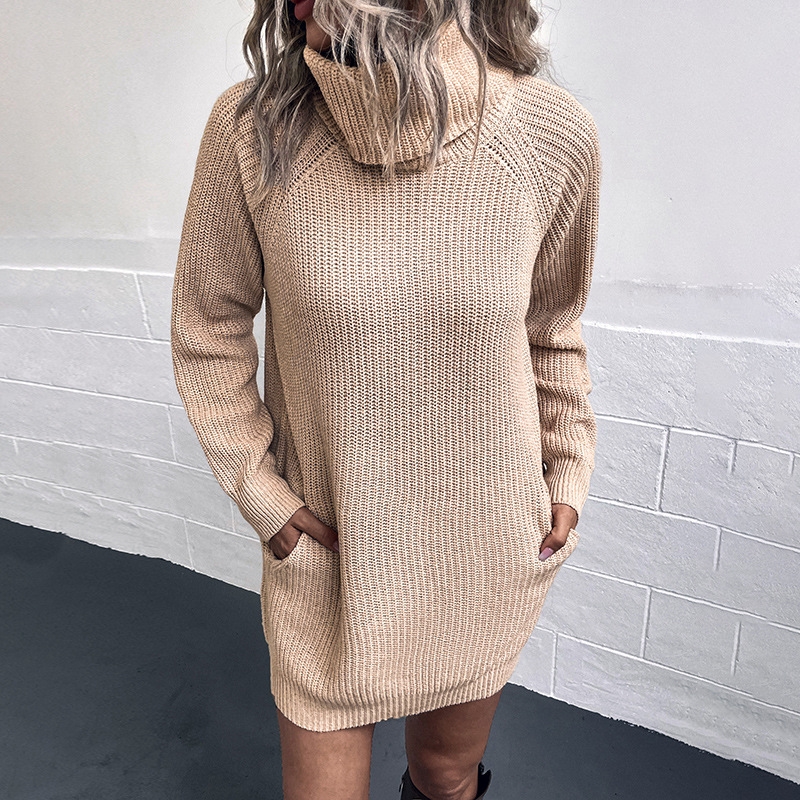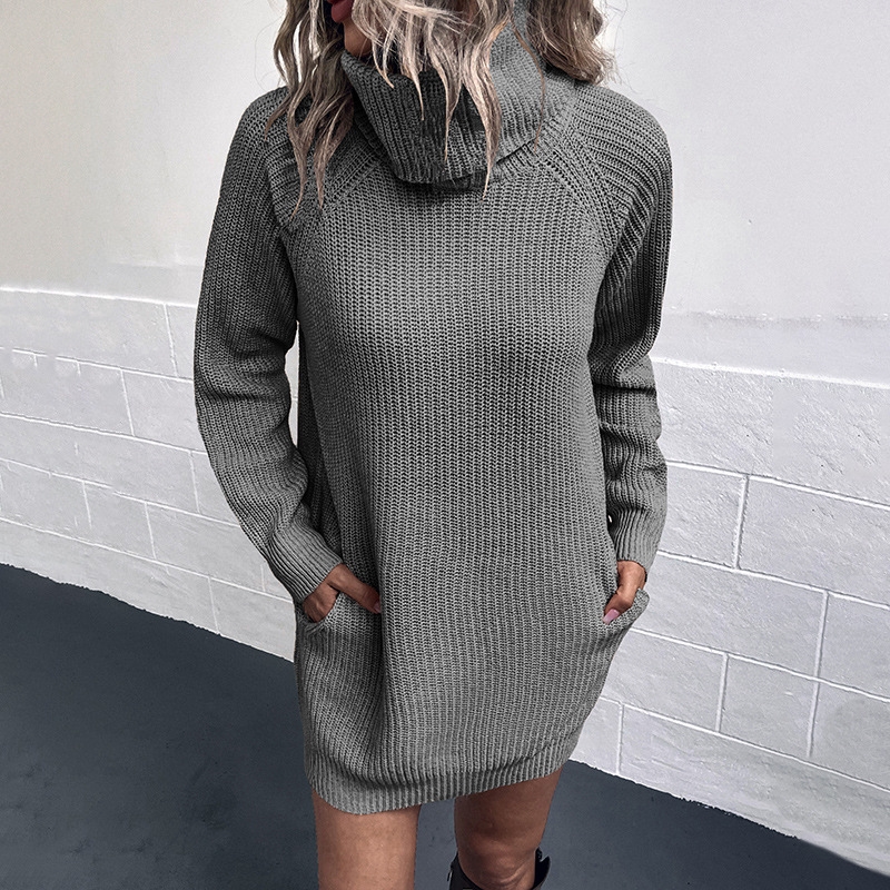 Woolen Dress: Solid Color Two-Lapel Knit Dress