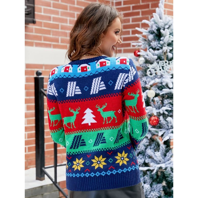 Jacquard Contrast Color Christmas Pullover Knitted Sweater
