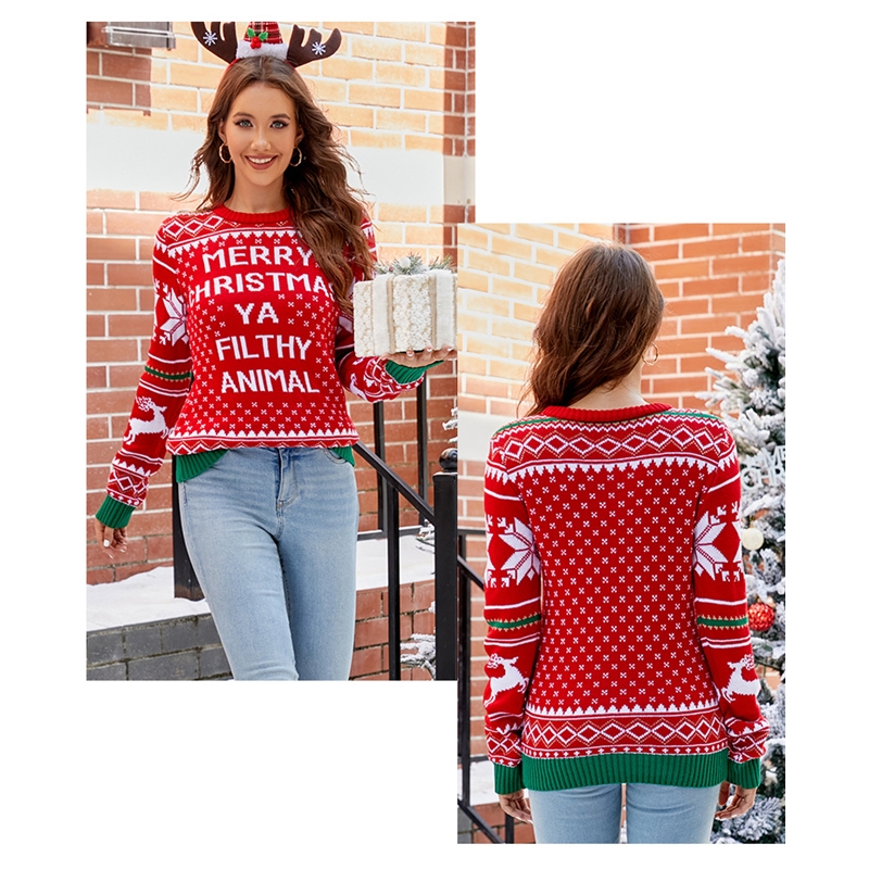 Crewneck Long Sleeves Christmas Pullover Knitted Sweater