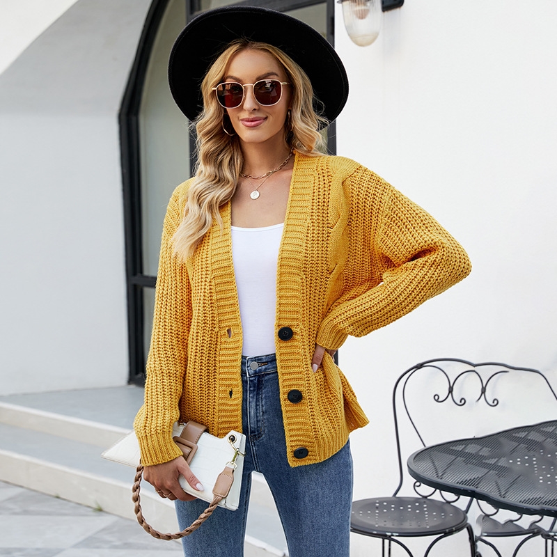 Women's Casual Button Knitwear Cardigan Sweater Coat With Fried Dough Twists Heavy Thread