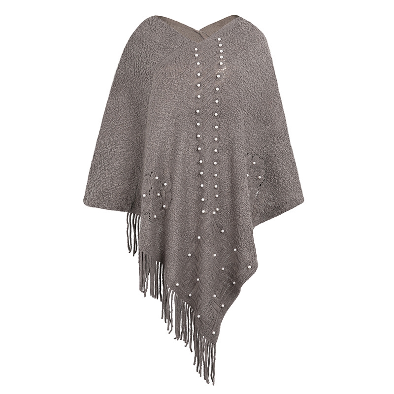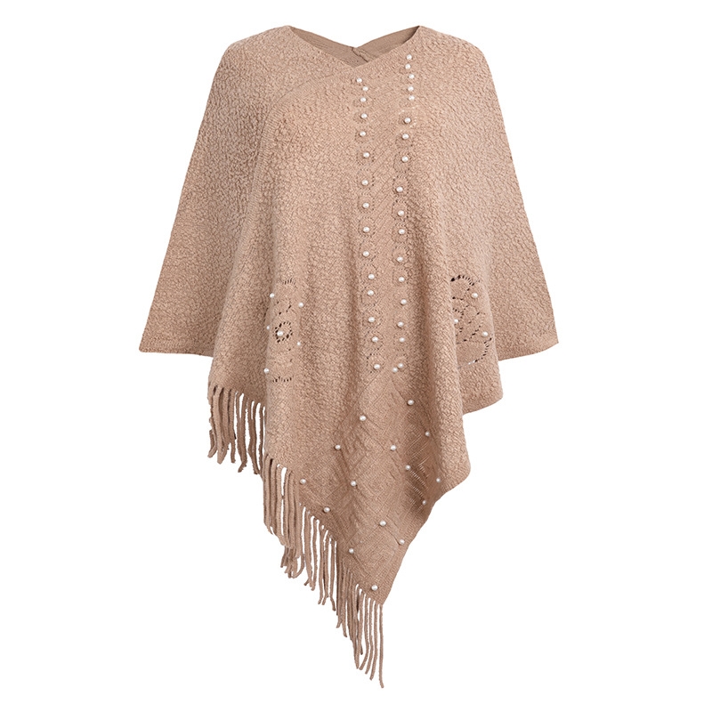 Female Beaded Knitwear Shawl Sweater With Tassel Cloak