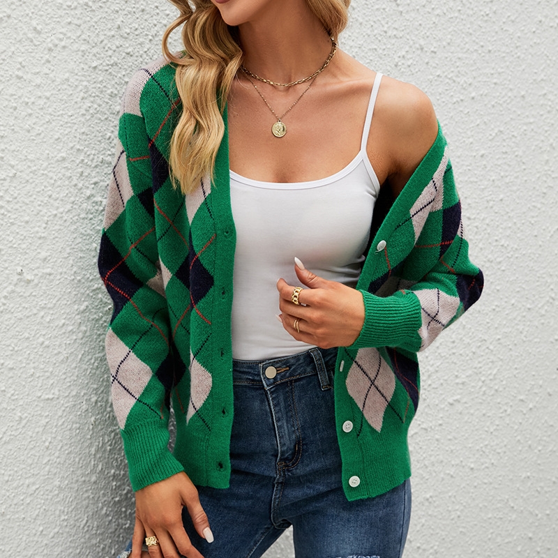 Women's Knitted Cardigan Jacket With Contrasting Buttons Sweater
