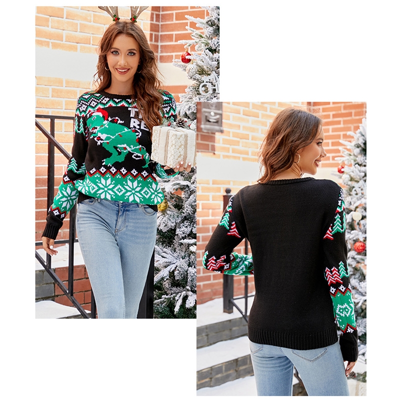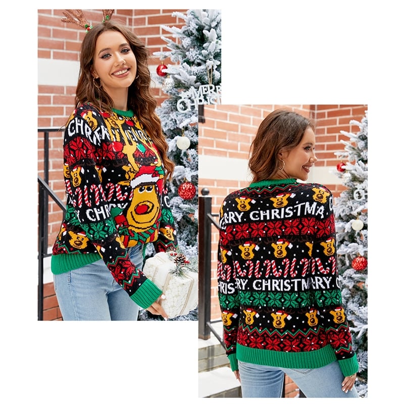 1. This Crewneck Pullover Sweater is a festive long-sleeved style for the winter season.