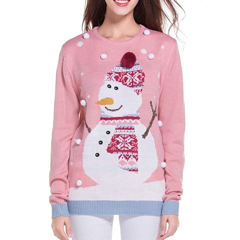 1. This Long Sleeves Crewneck Snowman Christmas Sweater is a fun and festive way to stay warm during the holidays. The bright colors and playful snowman design will spread Christmas cheer everywhere.