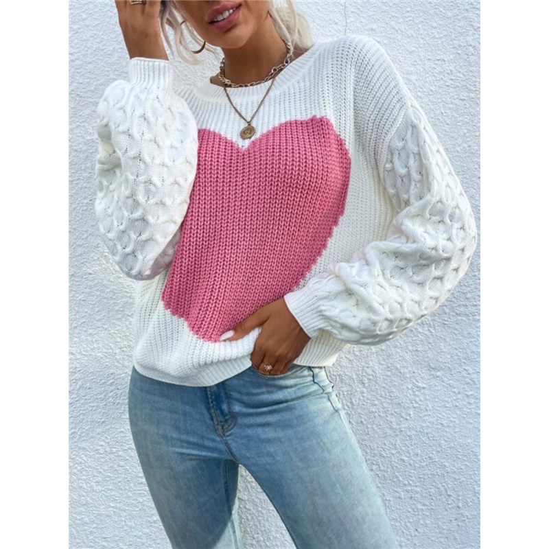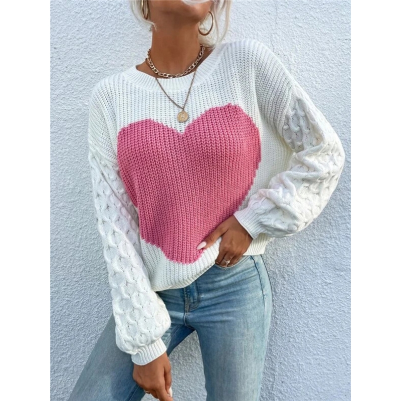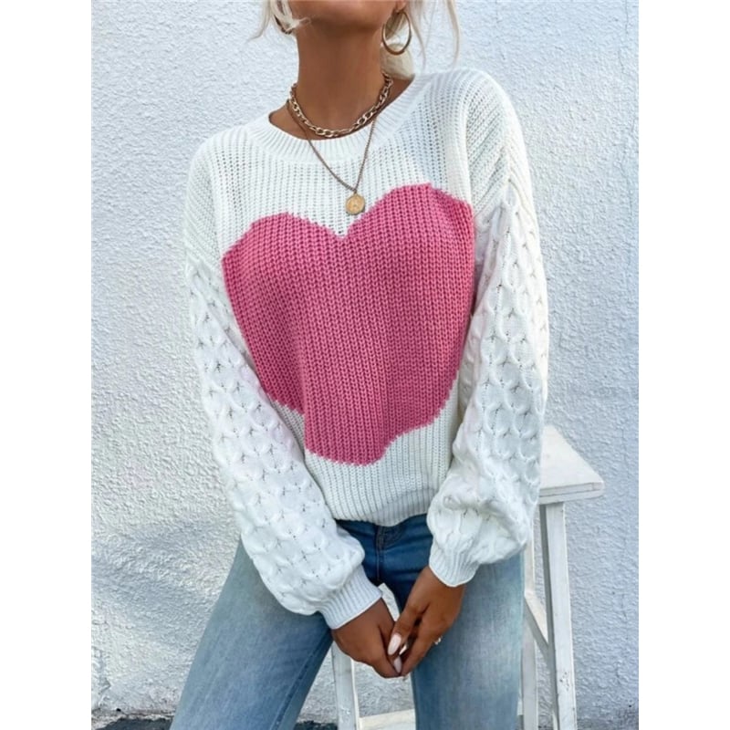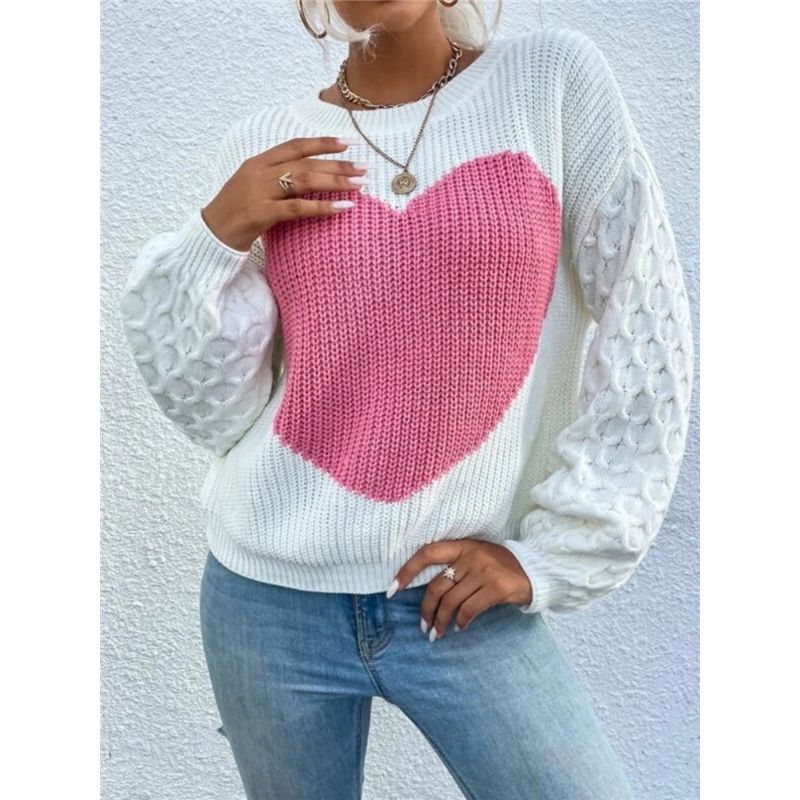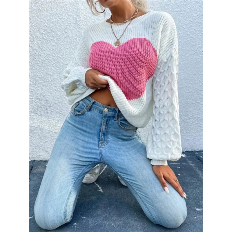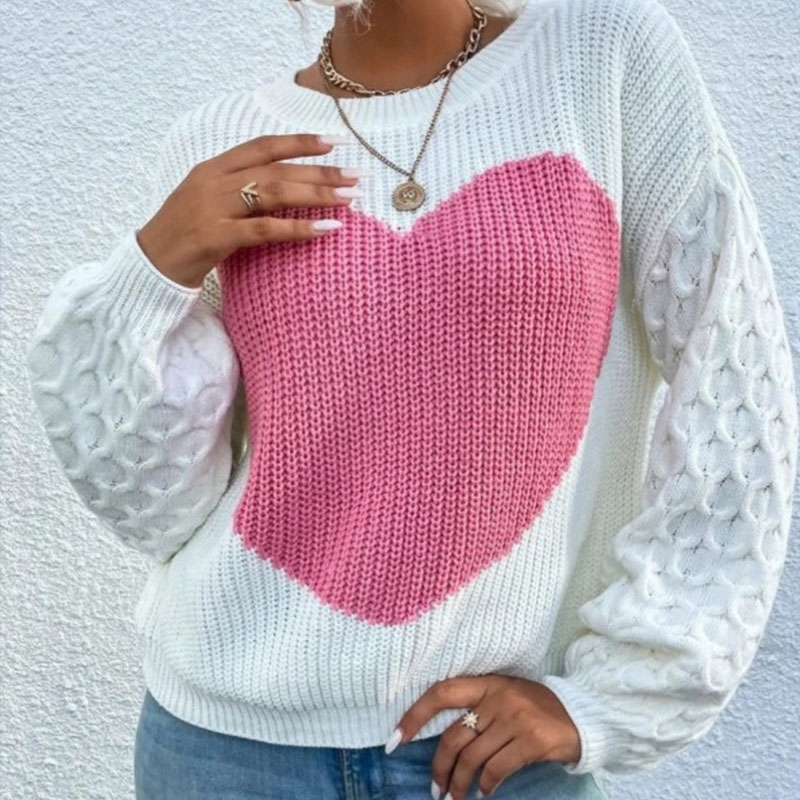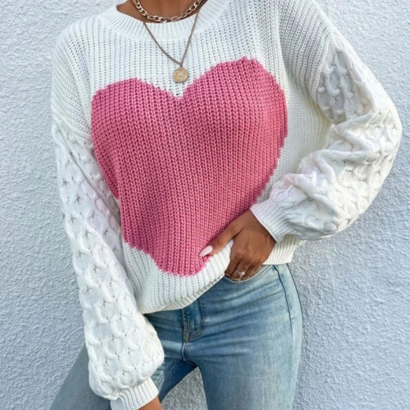 Heart Shaped Jacquard Crewneck Knitted Sweater