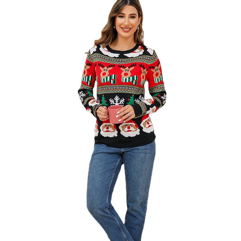 Casual Loose Jacquard Crewneck Christmas Knitted Sweater
