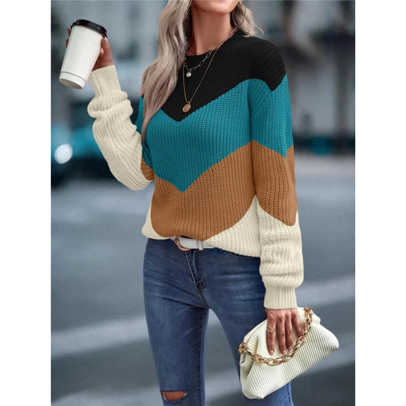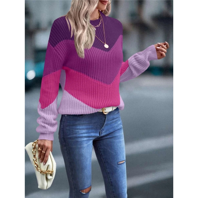 Contrast Color Crewneck Striped Casual Loose Knitted Sweater