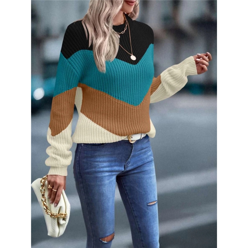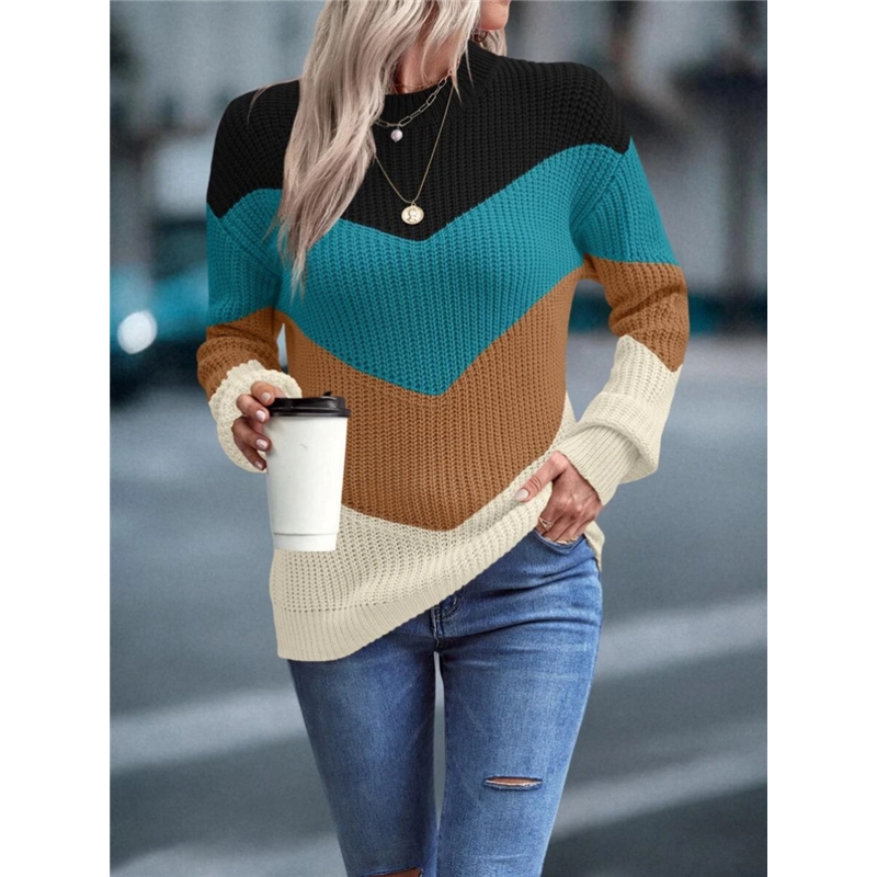 1.This Contrast Color Crewneck Striped Casual Loose Knitted Sweater is made of a soft, breathable, and comfortable material that won't irritate your skin.