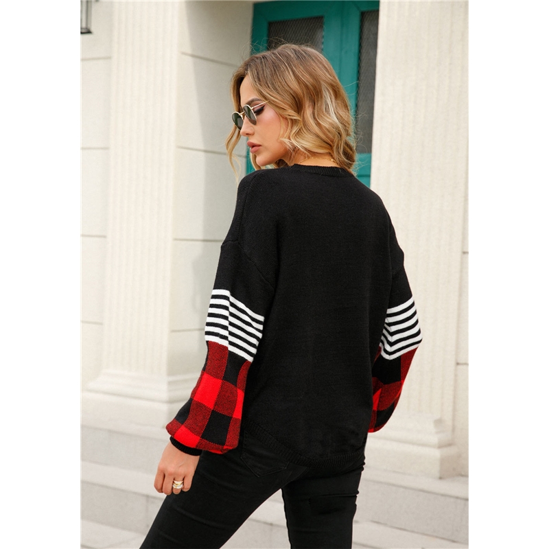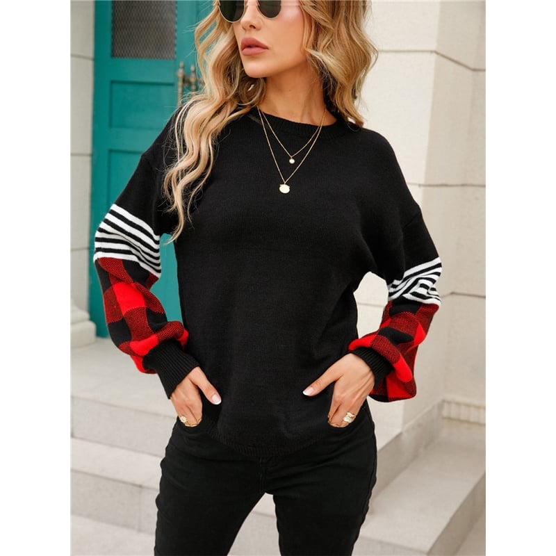 Crewneck Contrast Color Pullover Thin Knitted Sweater