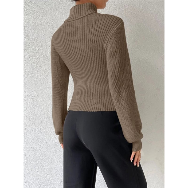 1. This solid-colored long sleeve knitted sweater boasts a timelessly stylish look that will never go out of fashion.