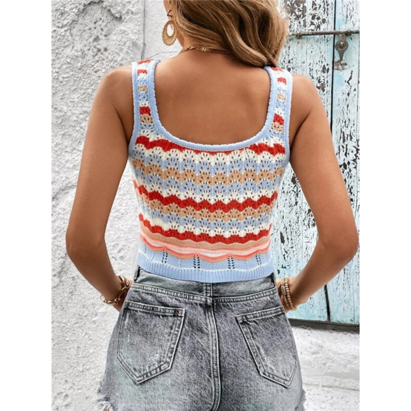 1. This sleeveless knitted vest tank top features a stylish U-neck.