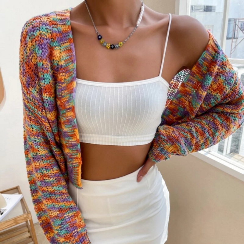 1. This Contrast Color Long Sleeves Short Knitted Cardigan is made of 100% combed cotton material that is silky soft and comfortable to wear.