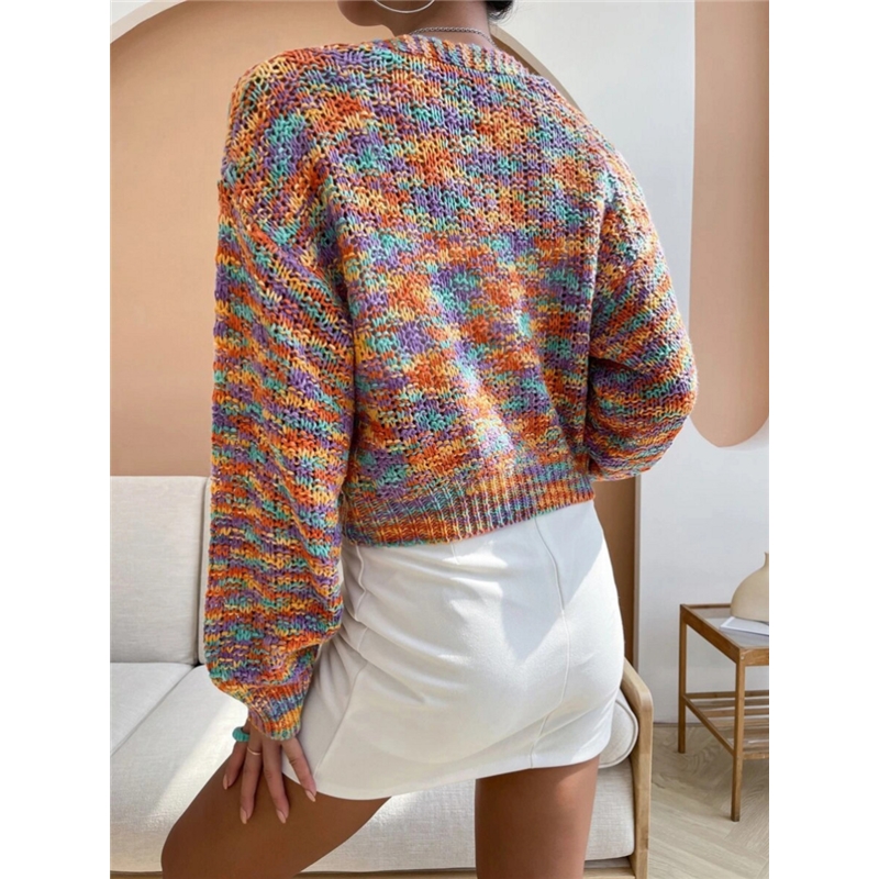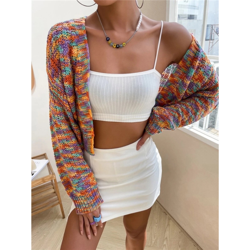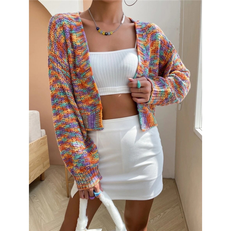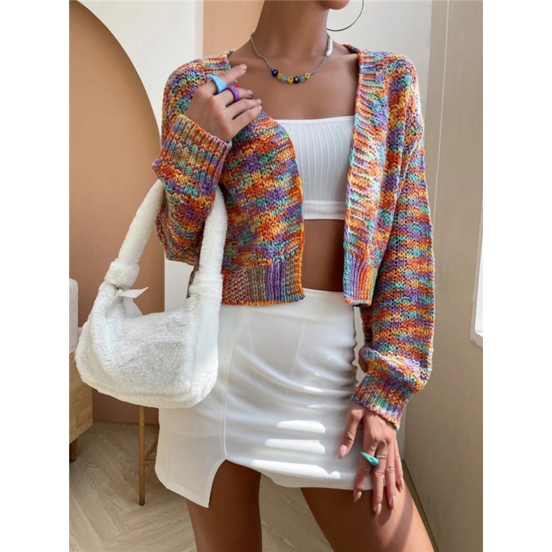 Contrast Color Long Sleeves Short Knitted Cardigan
