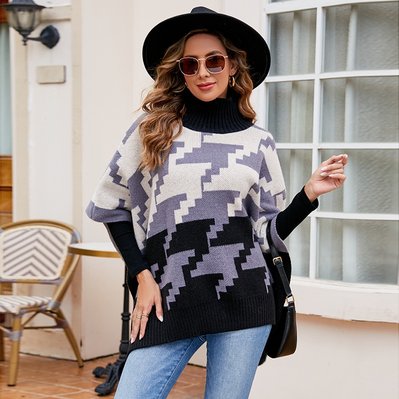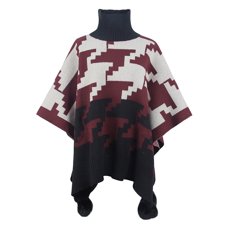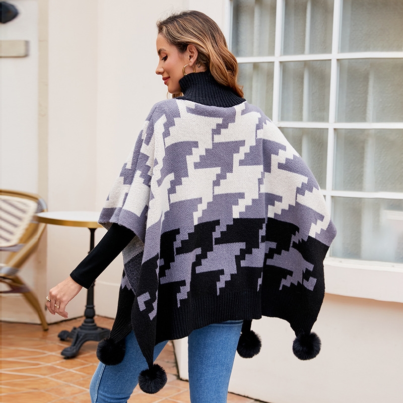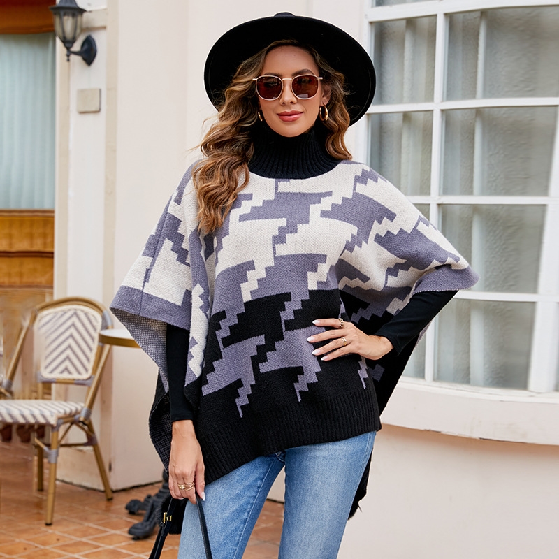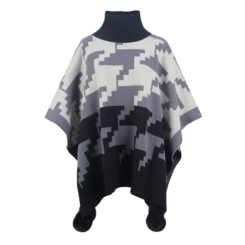 1. This Contrast Color High Neck Knitted Cape is made from luxurious, soft merino wool for the ultimate warmth and comfort.