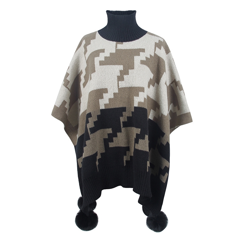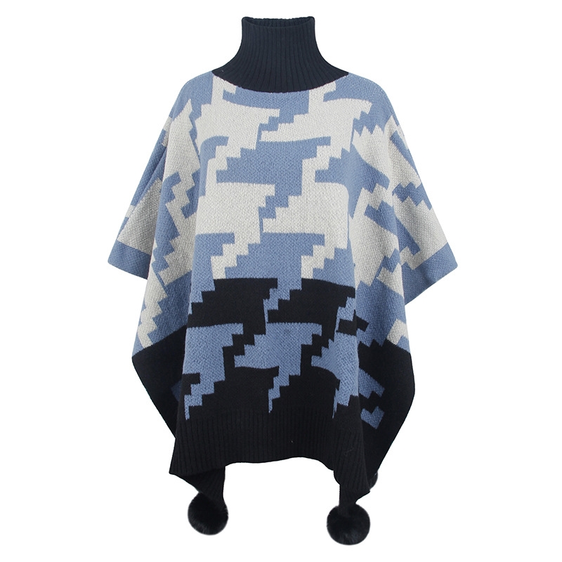 Contrast Color High Neck Knitted Cape