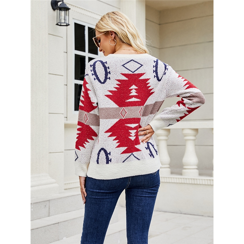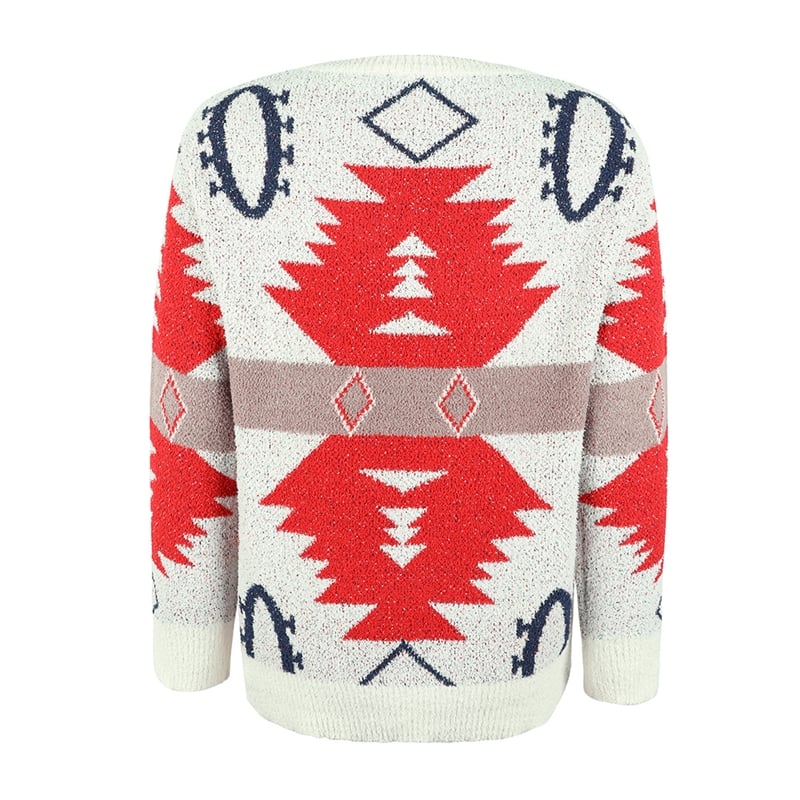 1. This fun crewneck sweater is made from a soft and cozy fabric with a fun contrast color pattern for added style.
