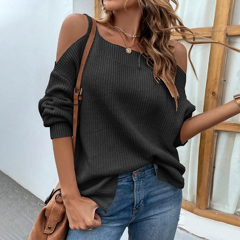 2. The sweater features a unique bare shoulder silhouette with a slit suspender design to flaunt your body shape.