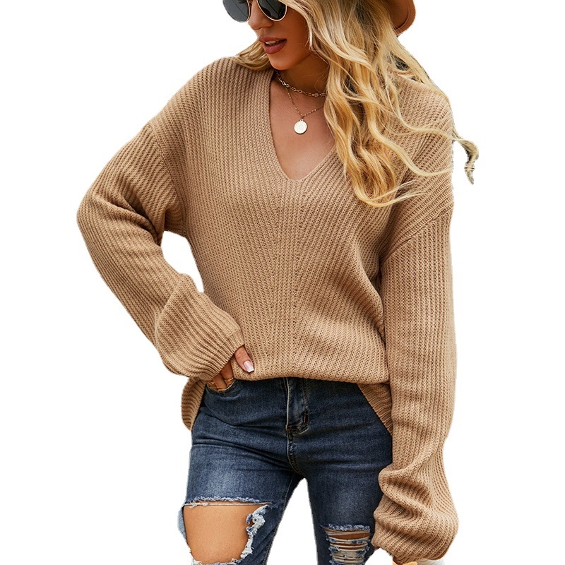 This long sleeve sweater is crafted from a lightweight and cozy fabric, making it comfortable to wear for any occasion. It features a stylish v-neck design that elongates the body while providing a feminine touch. The solid color and casual loose fit add a timeless and versatile appeal to the piece. The long sleeves and cozy material make it a perfect choice for chilly days. Pair with your favorite jeans for a casual yet fashionable outfit.