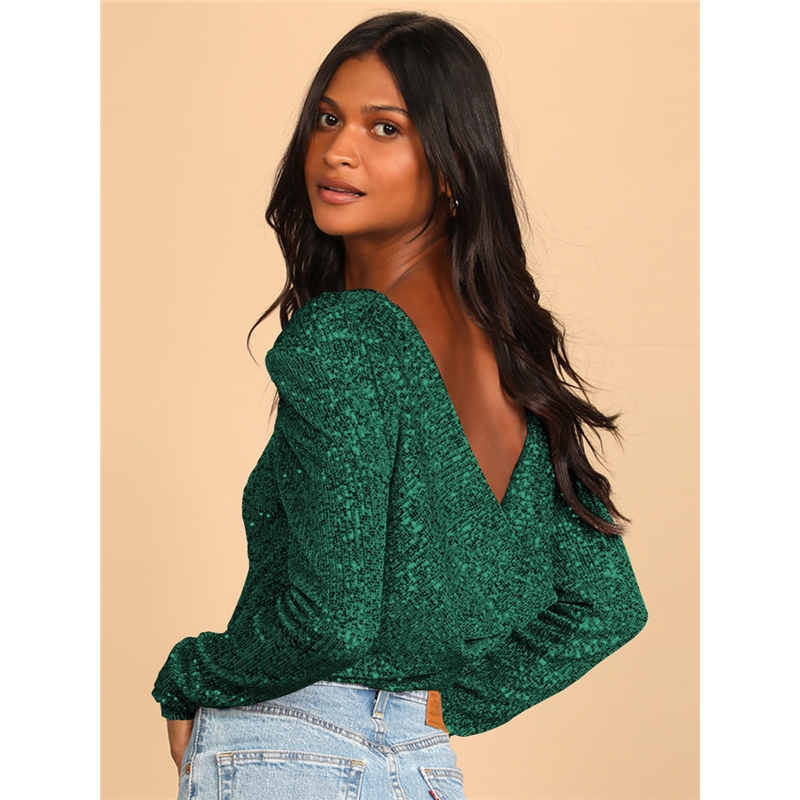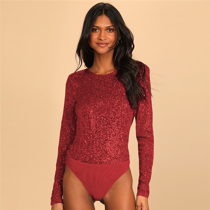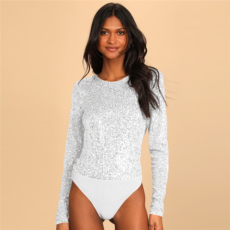 1. This rompers features long sleeves, a skinny fit, and sparkling sequins for a shiny look.