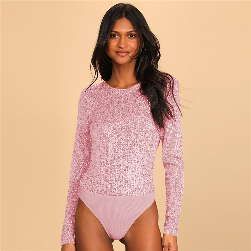 Solid Color Long Sleeves Sequins Skinny Rompers
