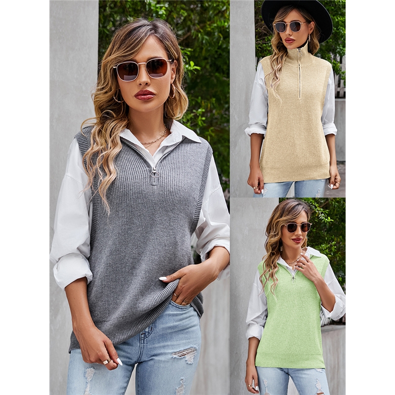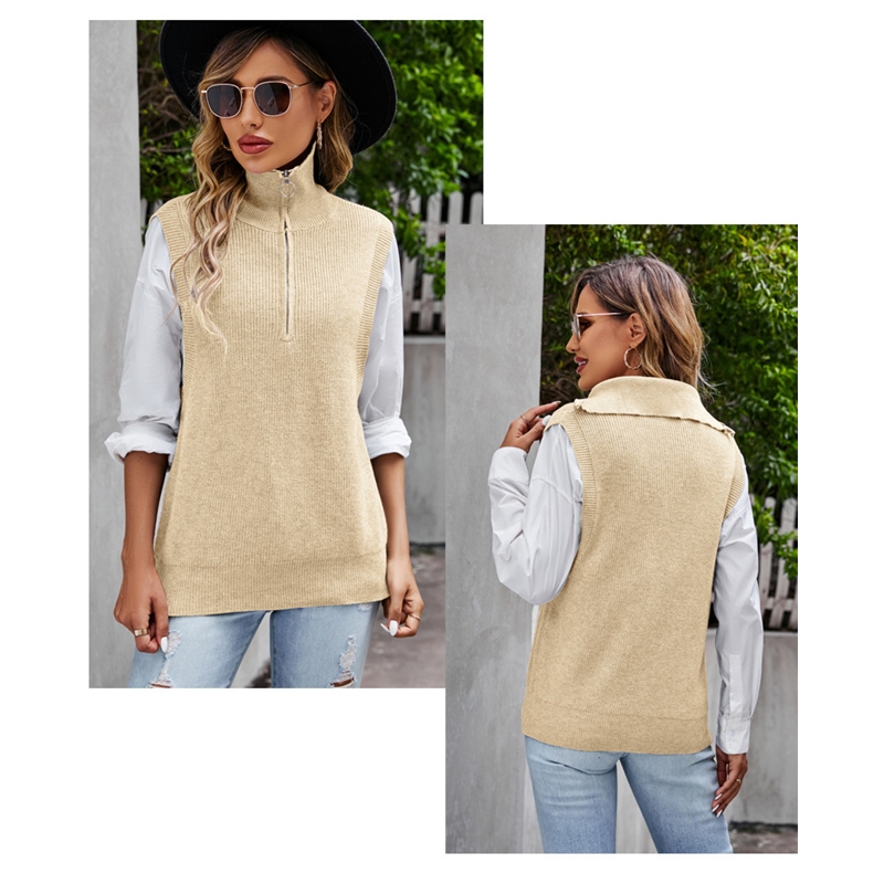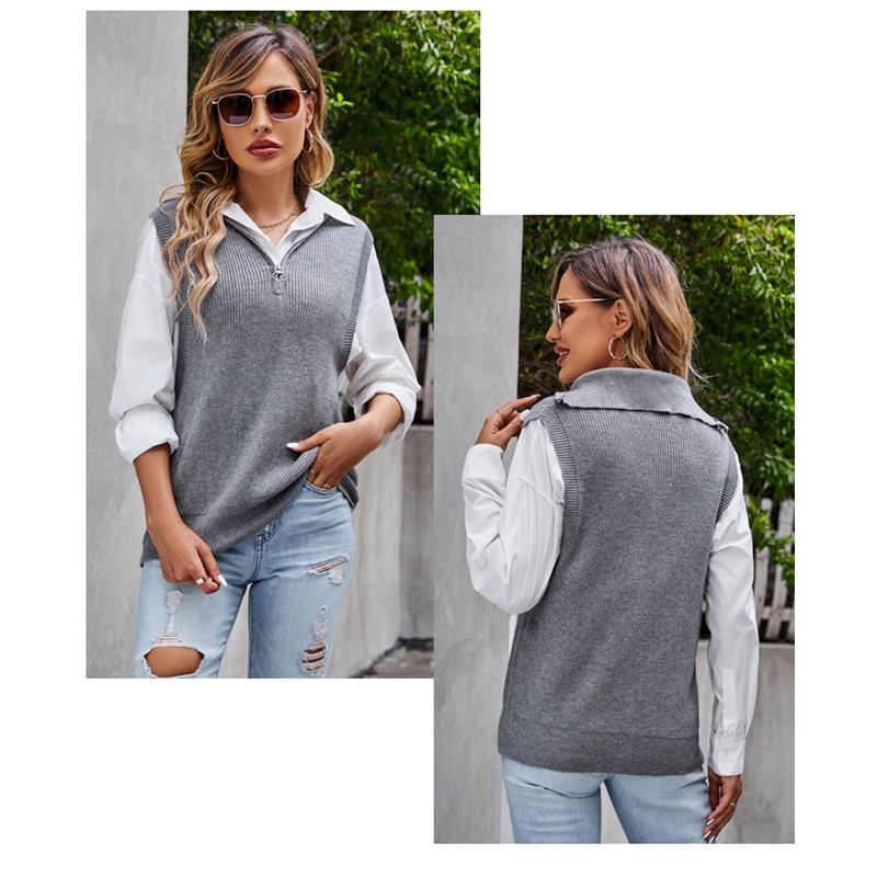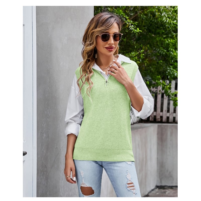 1. This sleeveless knitted vest features a classic V-neck and a loose fit for comfort and style. It is lightweight and breathable, making it an ideal addition to any wardrobe.