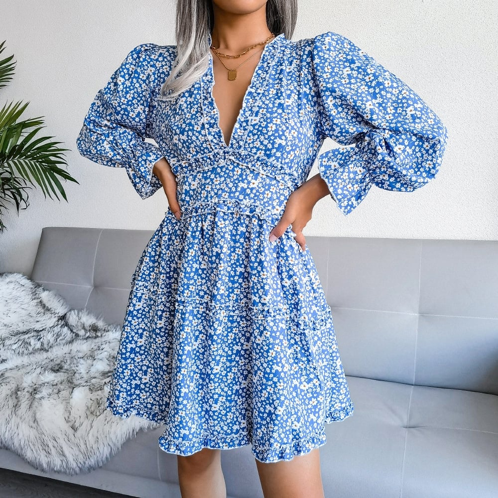 V-Neck Puff Sleeve Causal Loose Anti-Stress Mini Dress