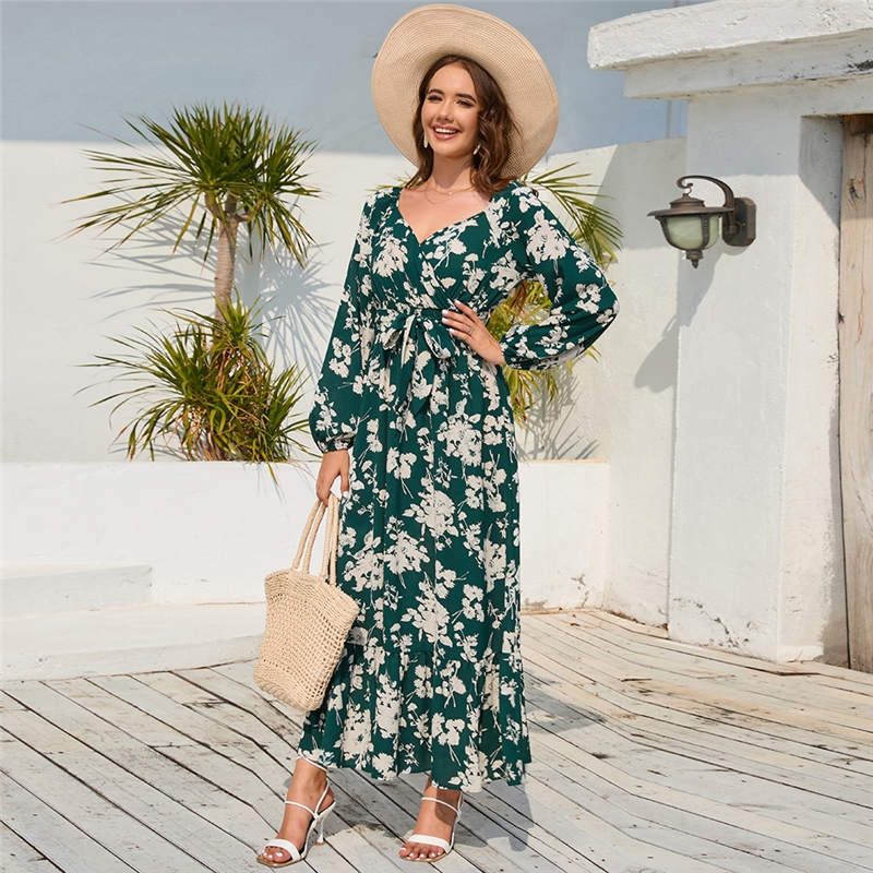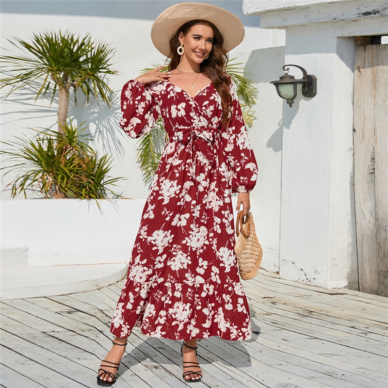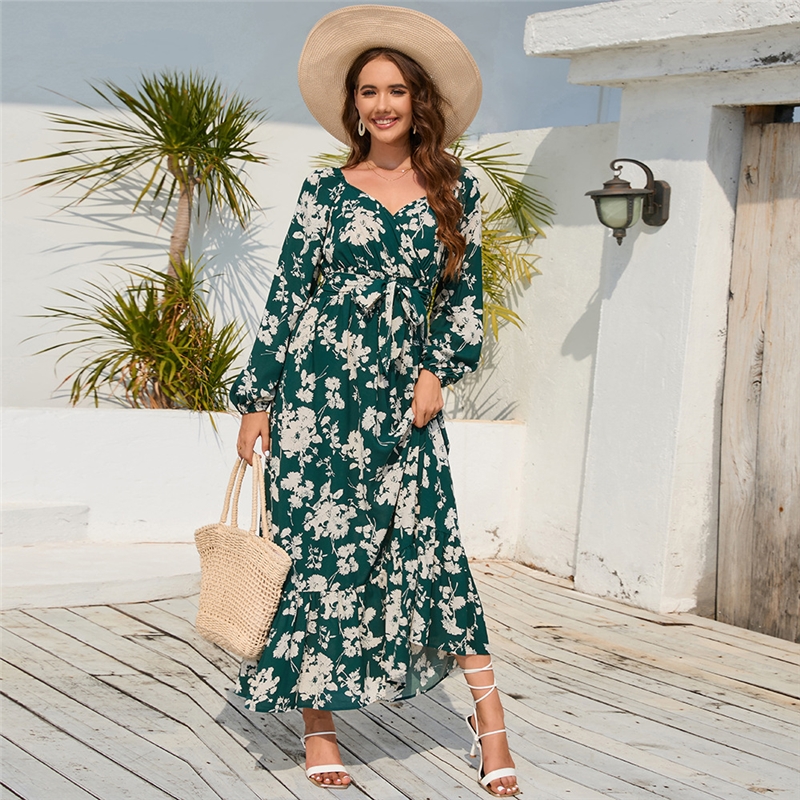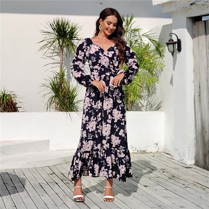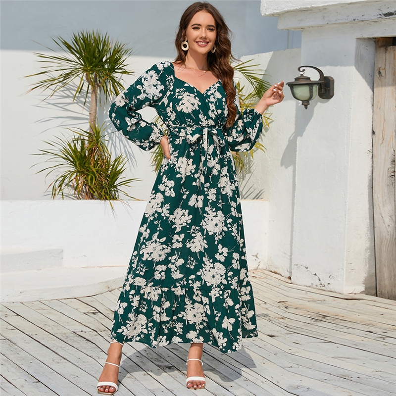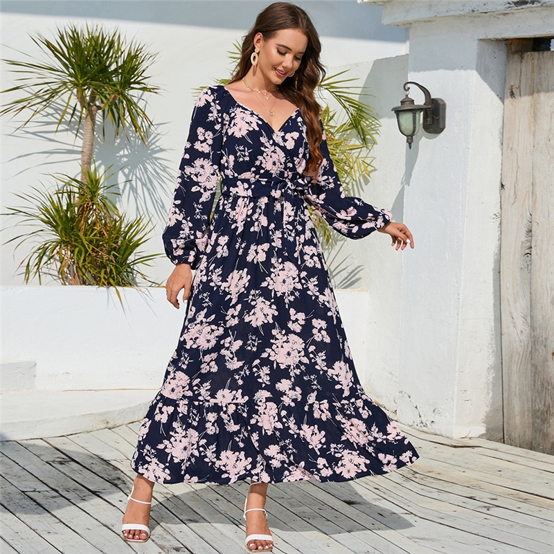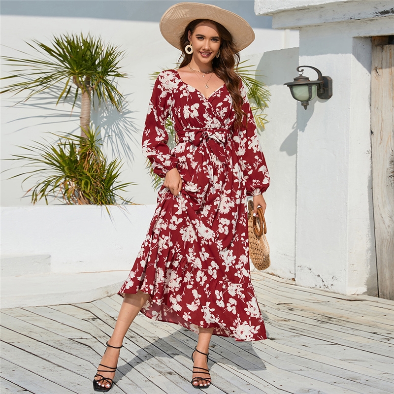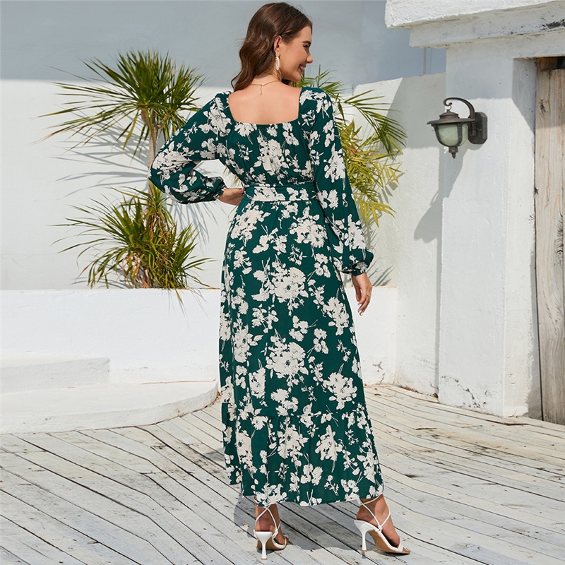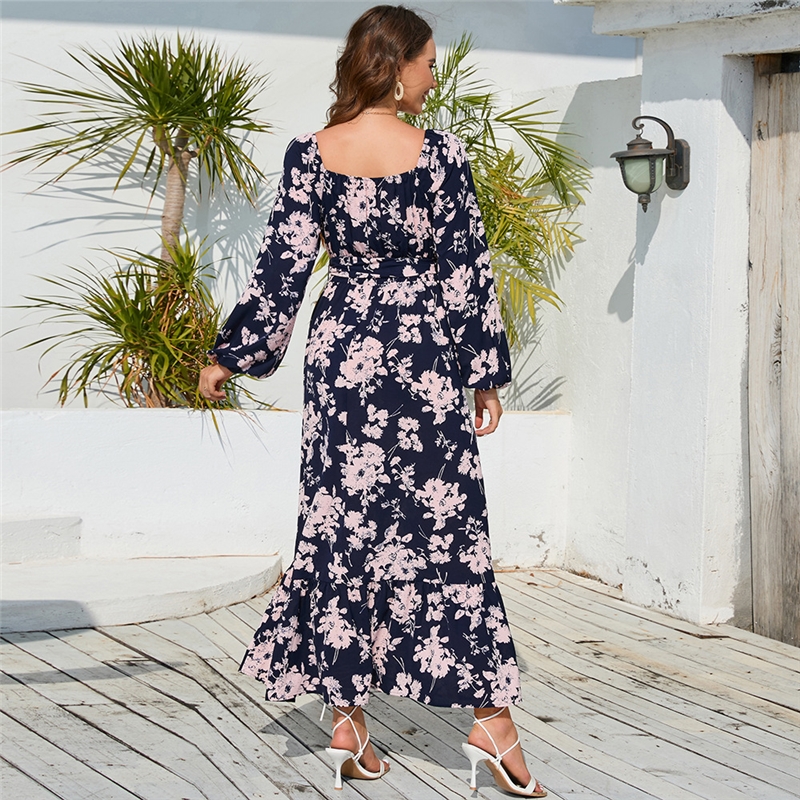Floral Lantern Sleeve Tie Cake Dress