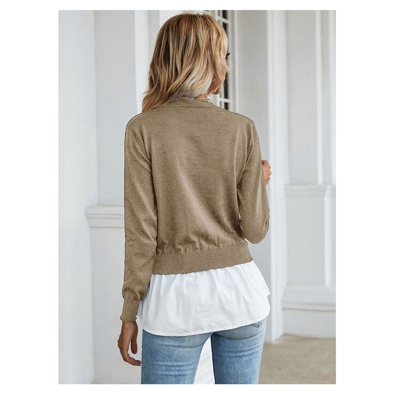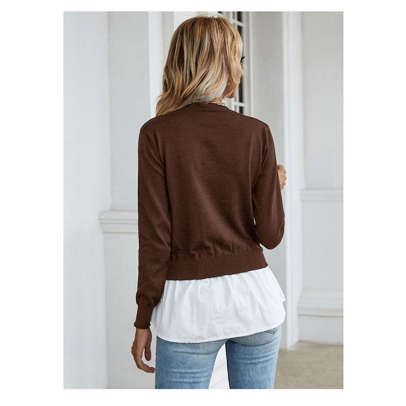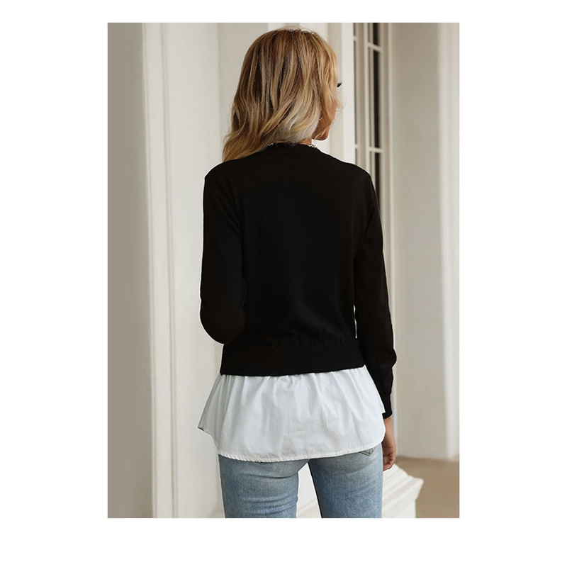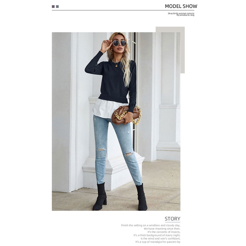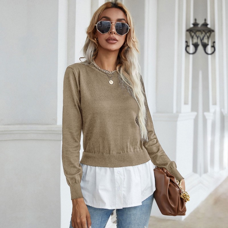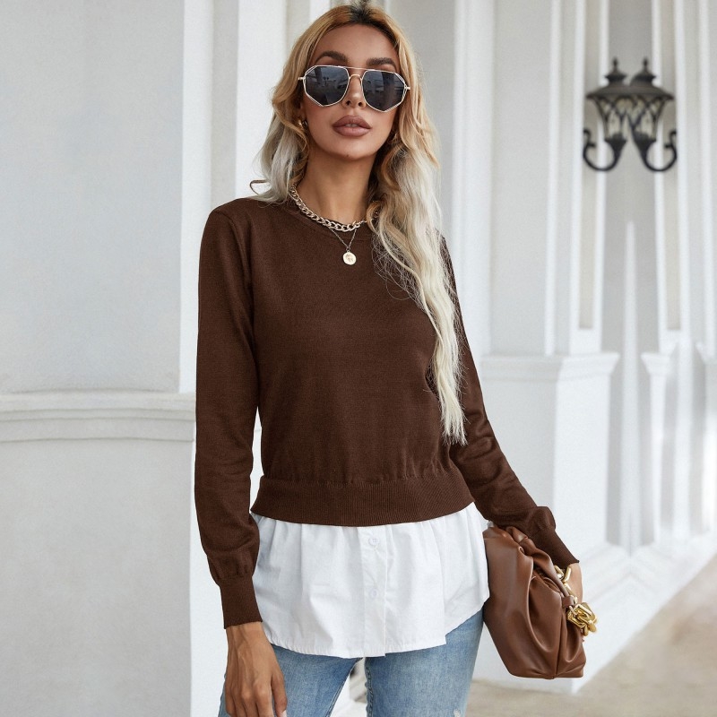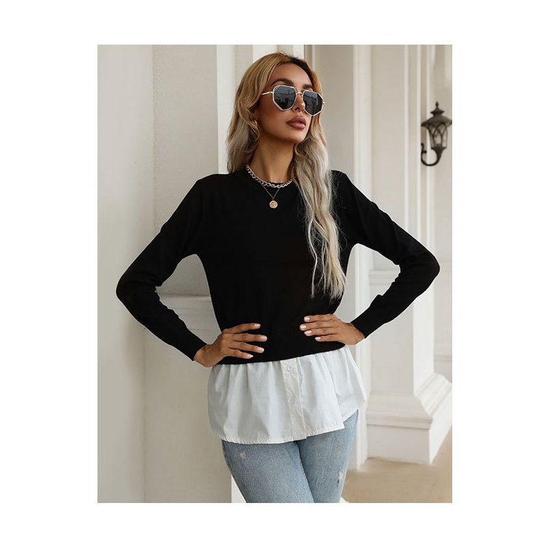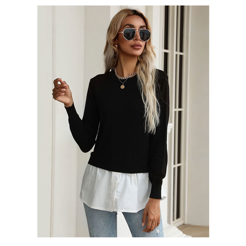 Long Sleeves Crewneck Patchwork Fake-Two Blouse Sweater