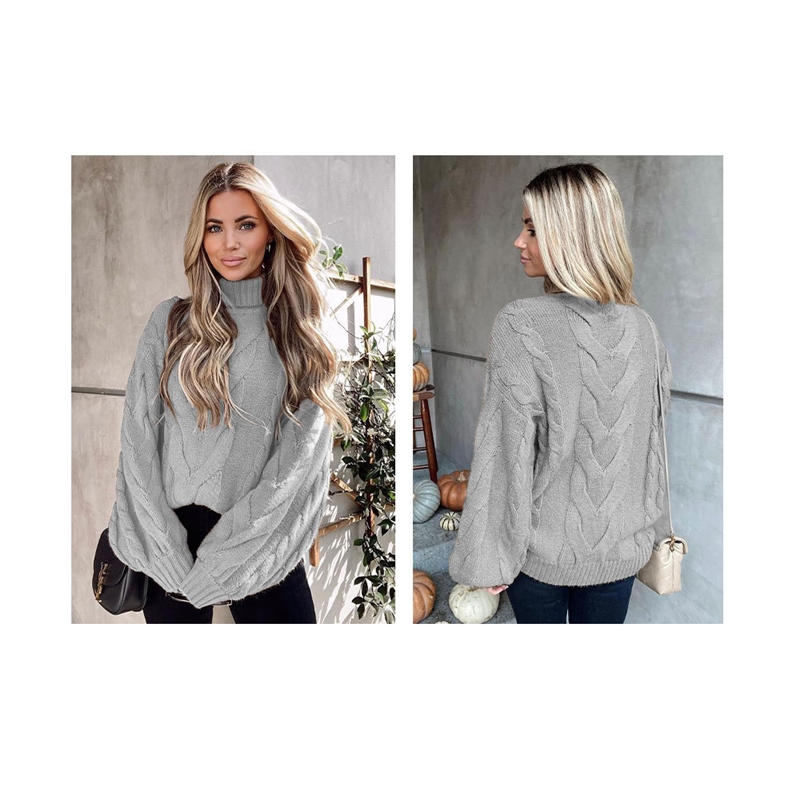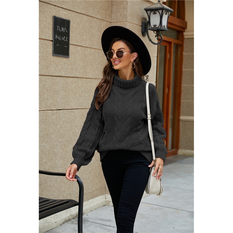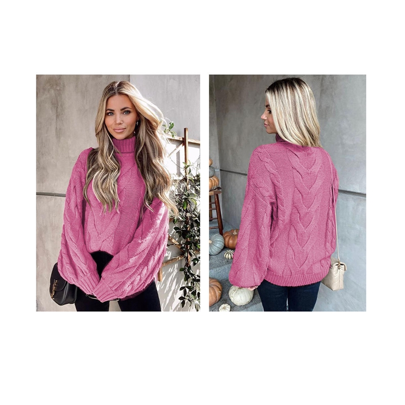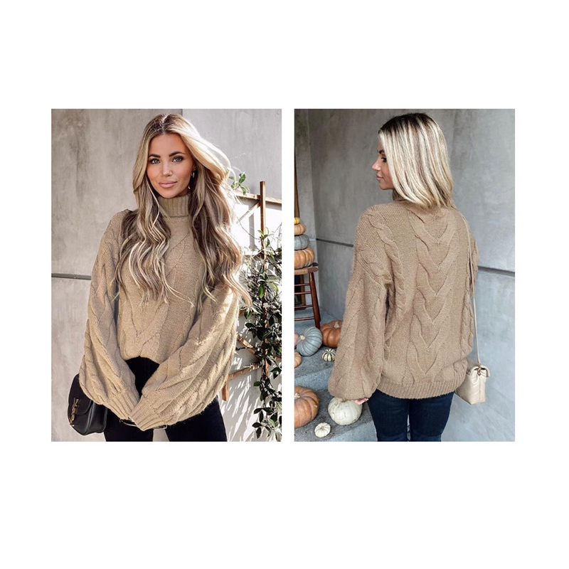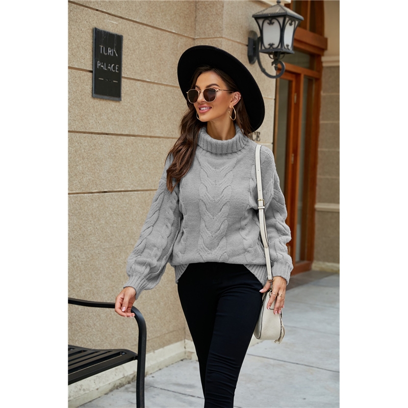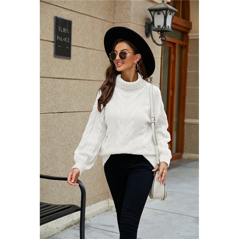 Solid Color Long Sleeves High Neck Twisted Knitted Sweater
