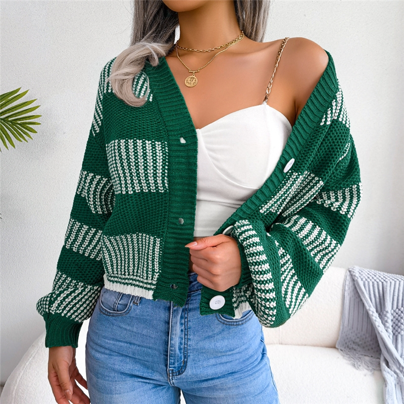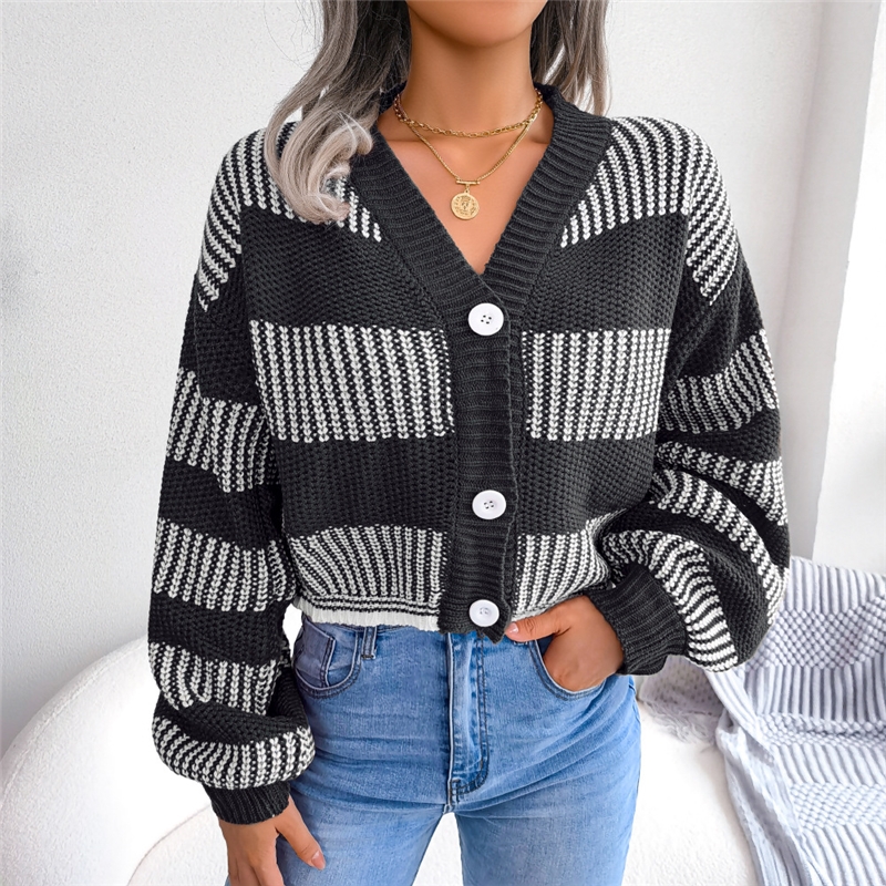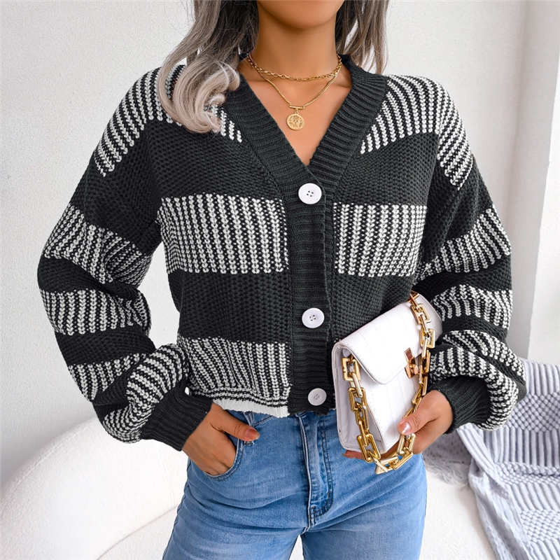 Long Sleeve V Neck Contrast Striped Sweater Outwear