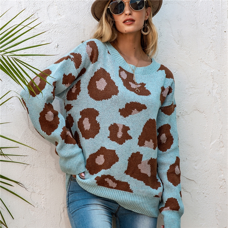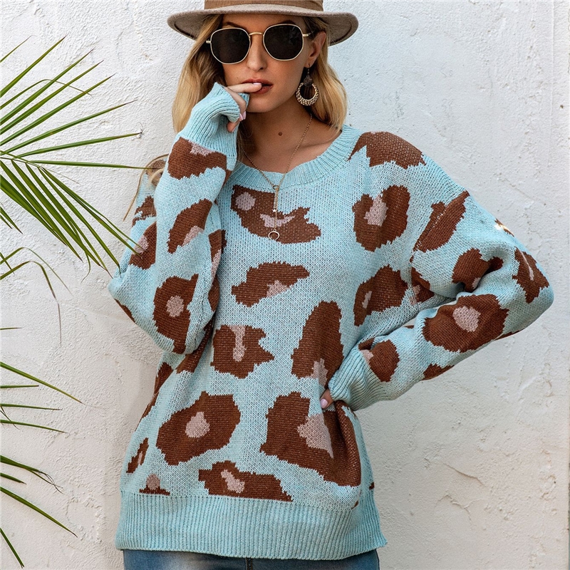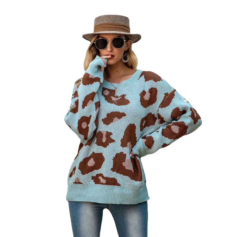 Leopard-Print Round-Neck Loose Pullover Sweater