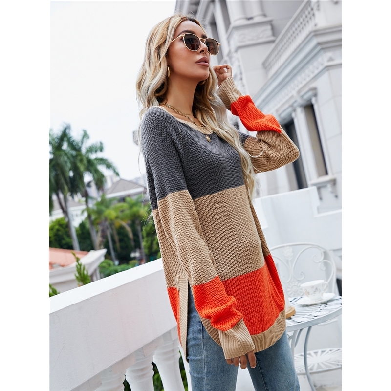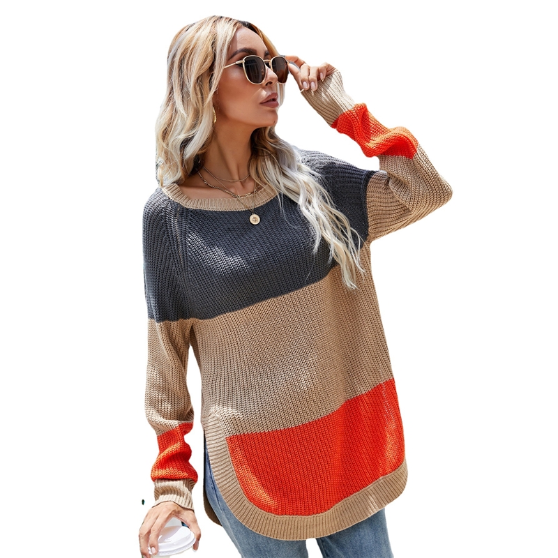 Medium-Length A High Slit And Color Contrast Sweater