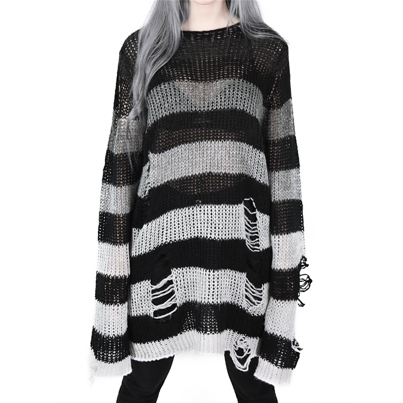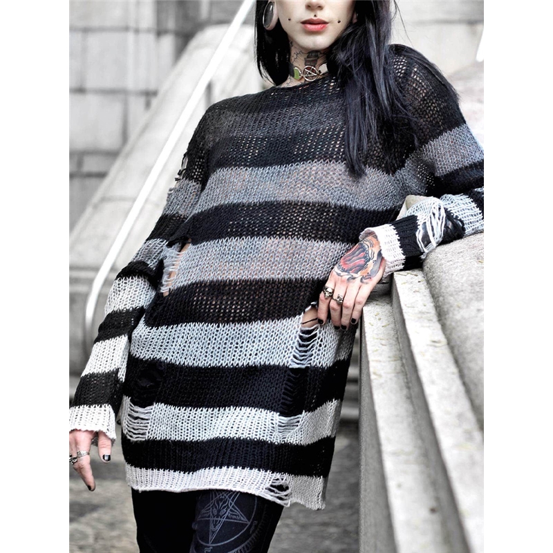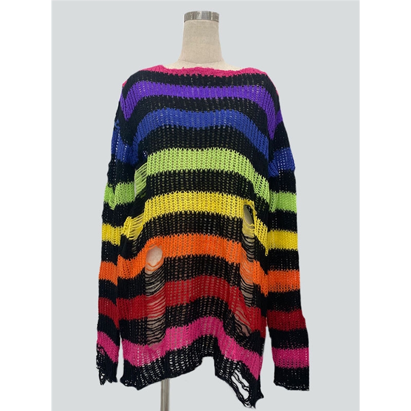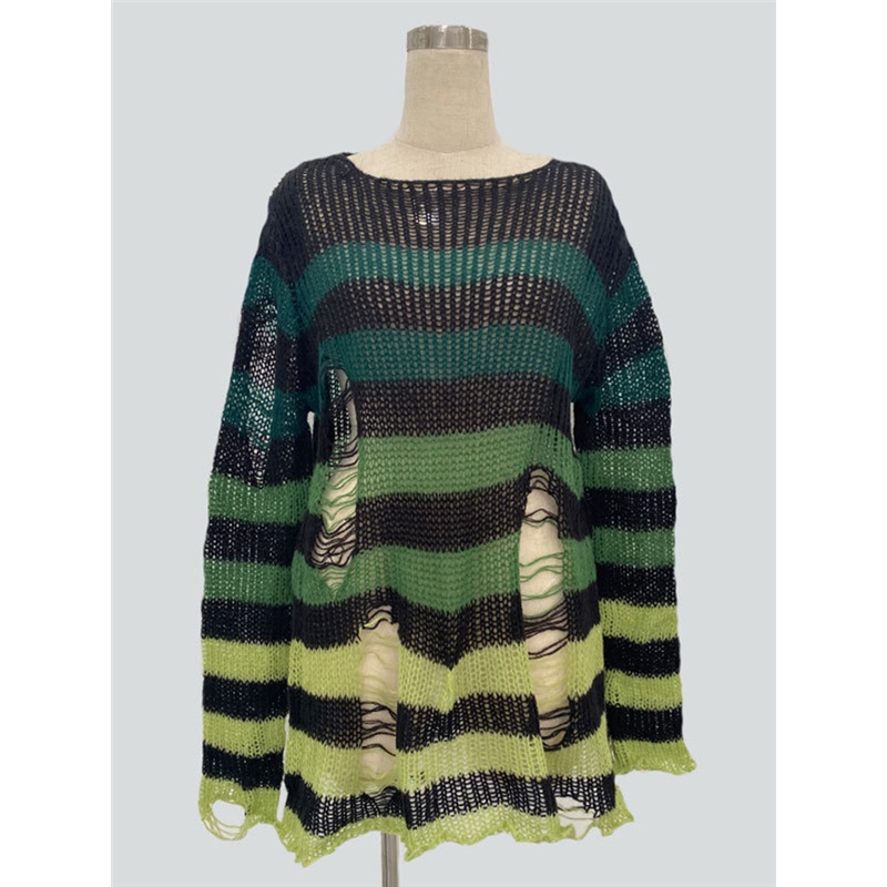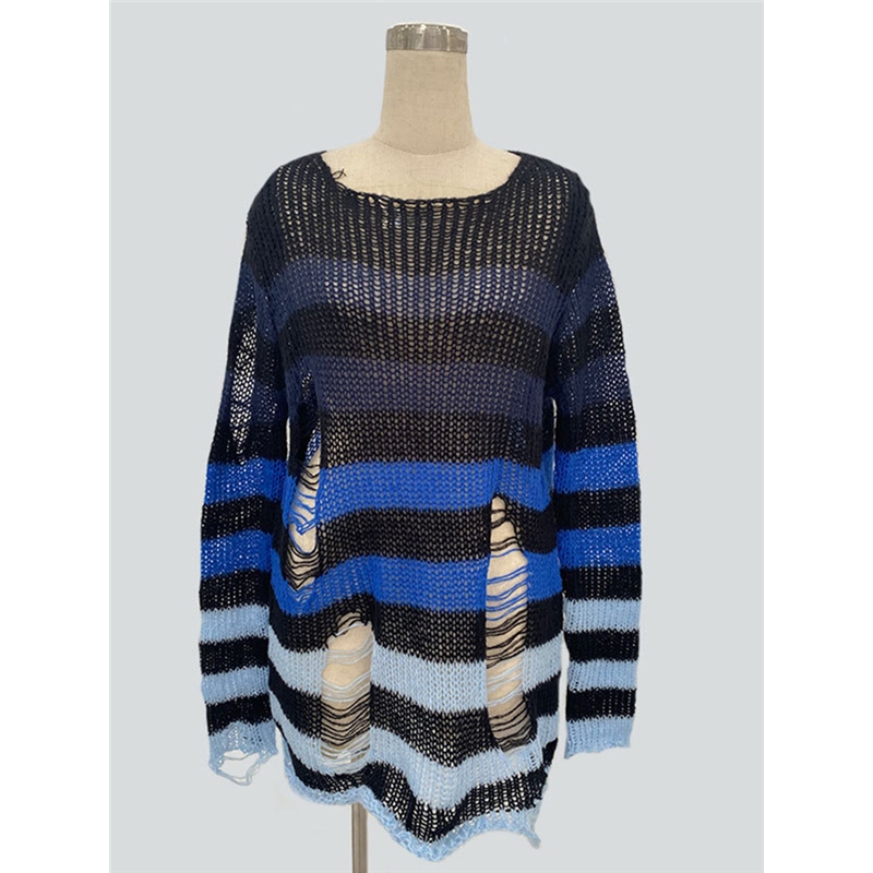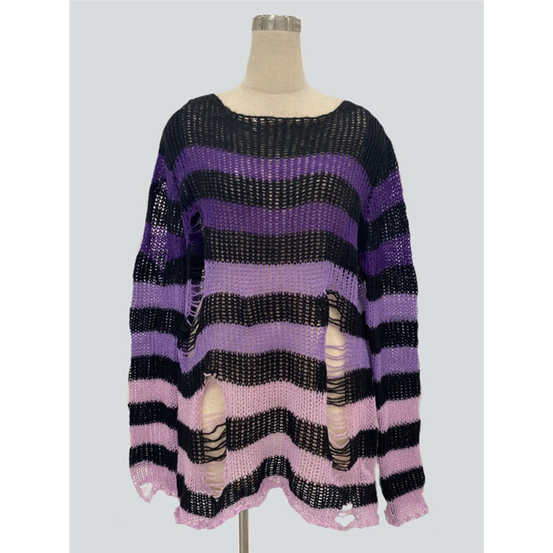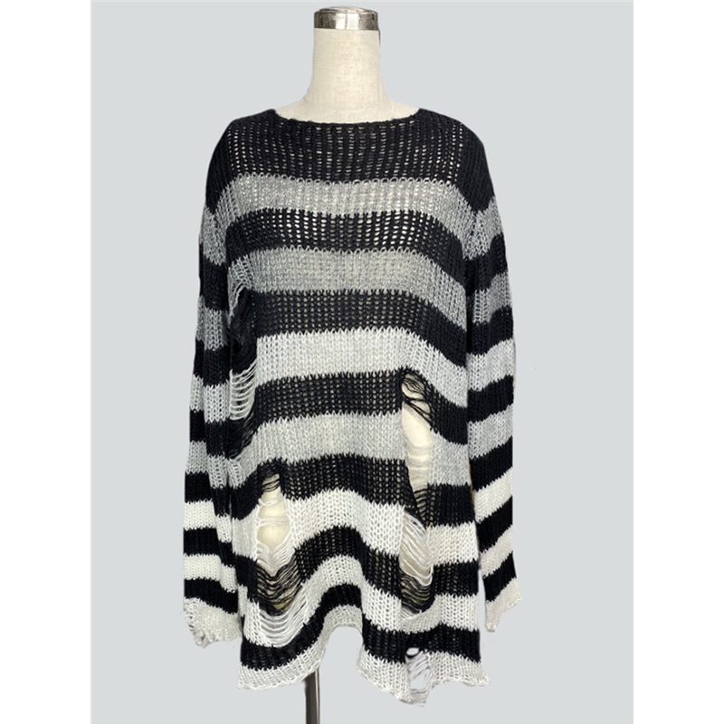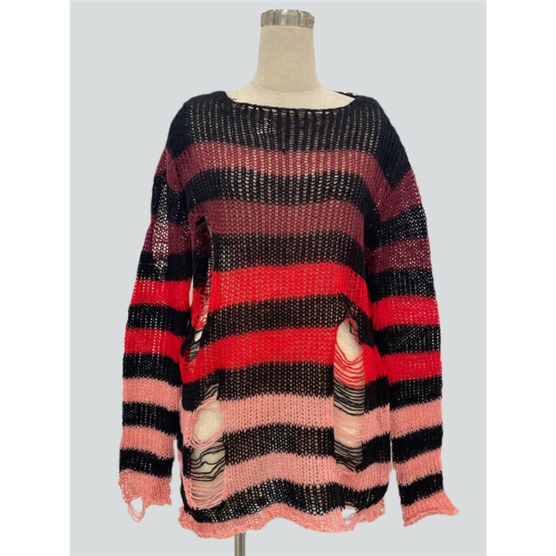 Stripe Loose Fit Ripped Sweater