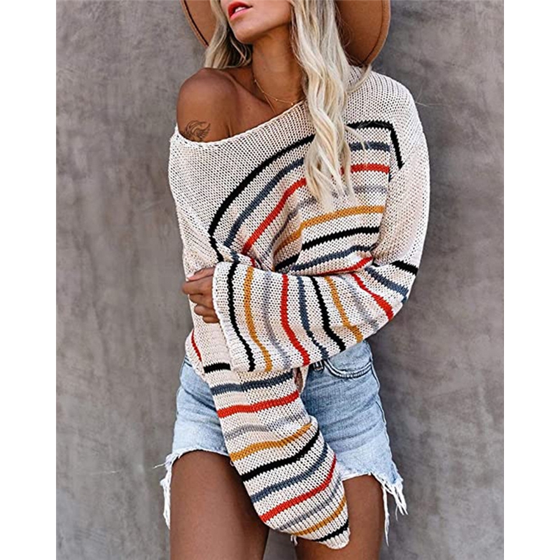 Long Sleeve Boat Neck Striped Sweater