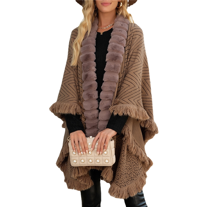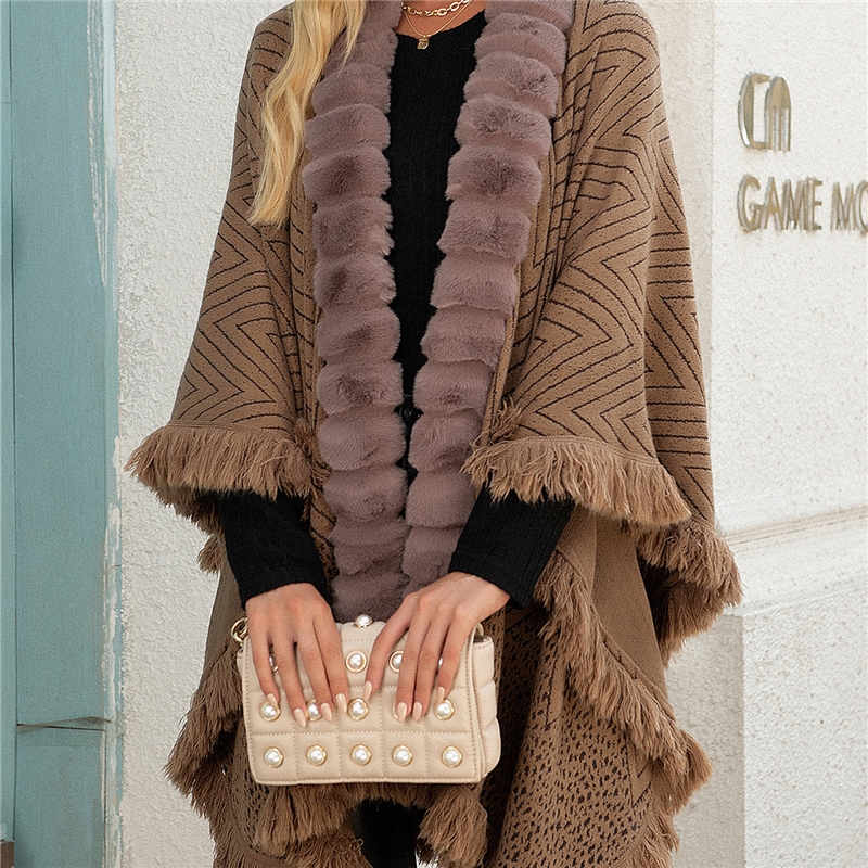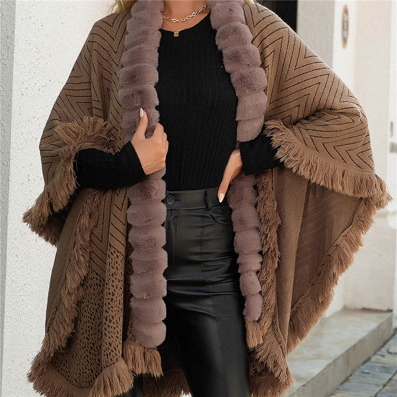 Light Luxury Wool Collar Fringe Cape Sweater Bucket