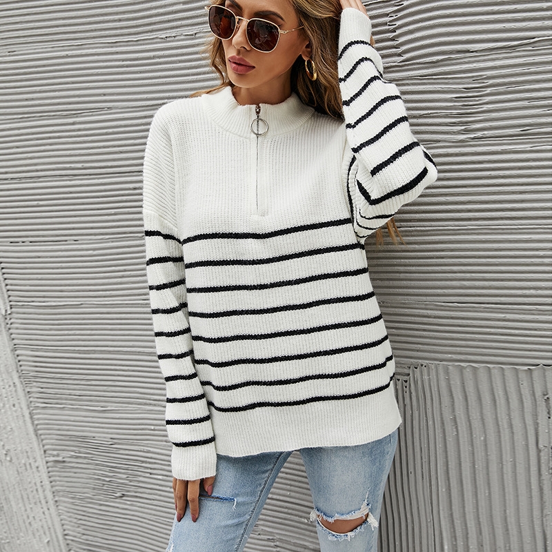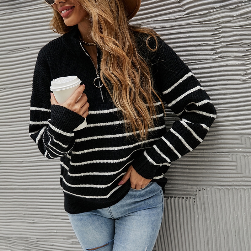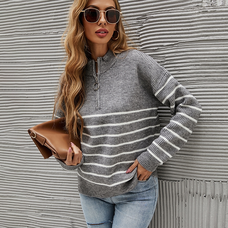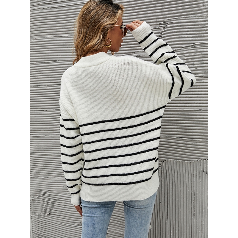 Long Sleeve V Neck Loose Fit Striped Sweater