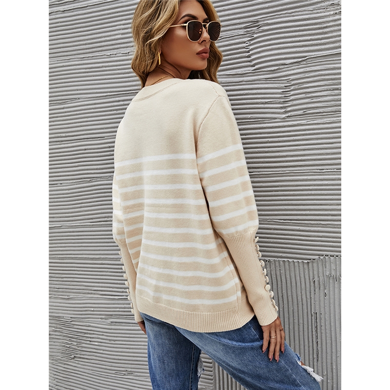 Long Sleeve Round Neck Loose Fit Striped Sweater