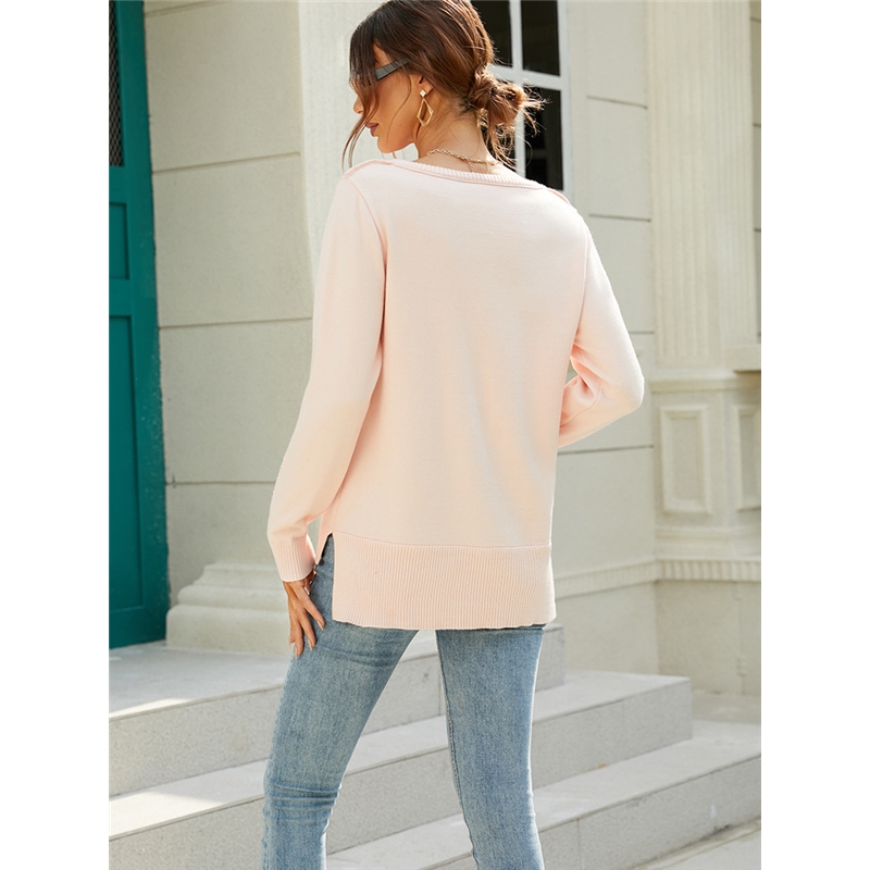 Long Sleeve Round Neck Solid Color Pullover Sweater