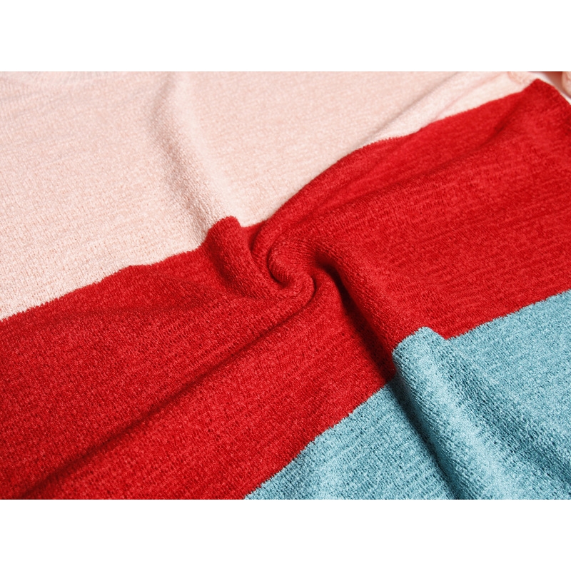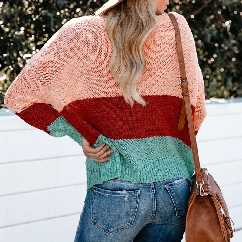 Long Sleeve Boat Neck Striped Contrast Sweater