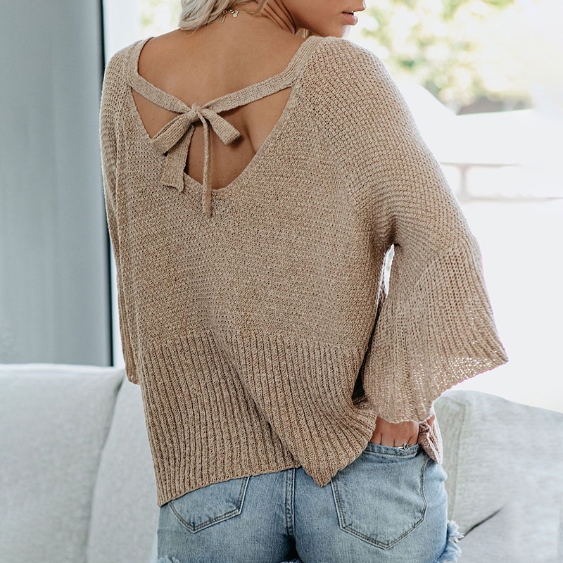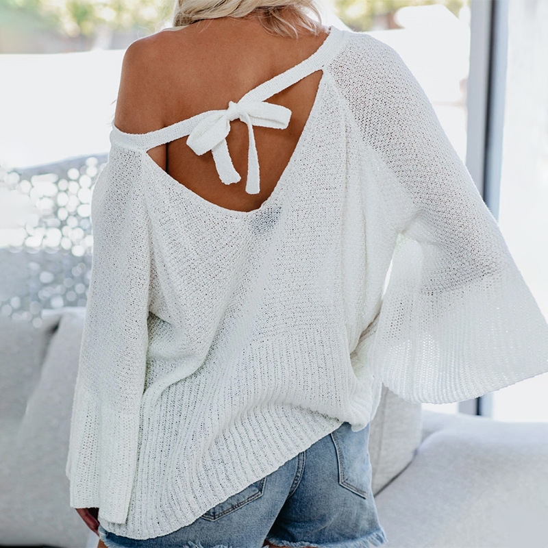 Batwing Sleeve Boat Neck Bandage Backless Sweater