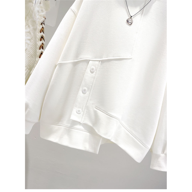 Solid Color Long Sleeves Irregular Thin Sweatshirt