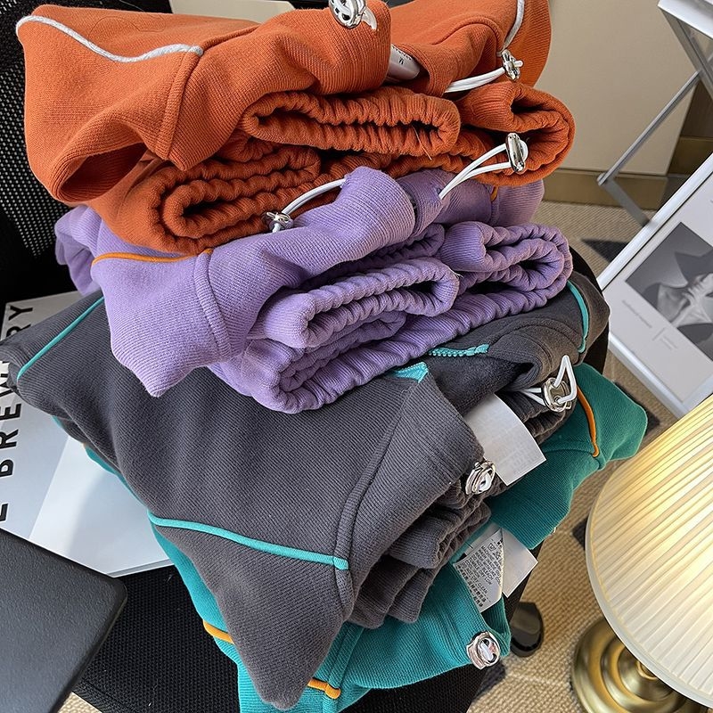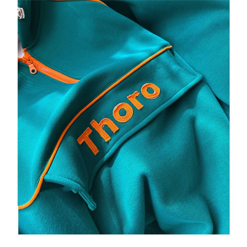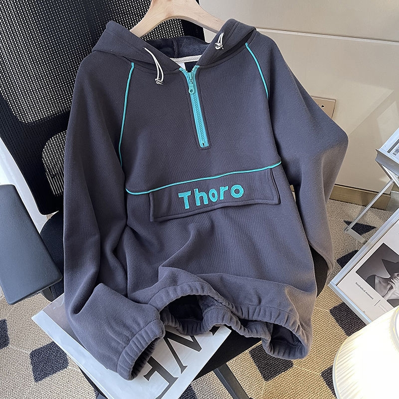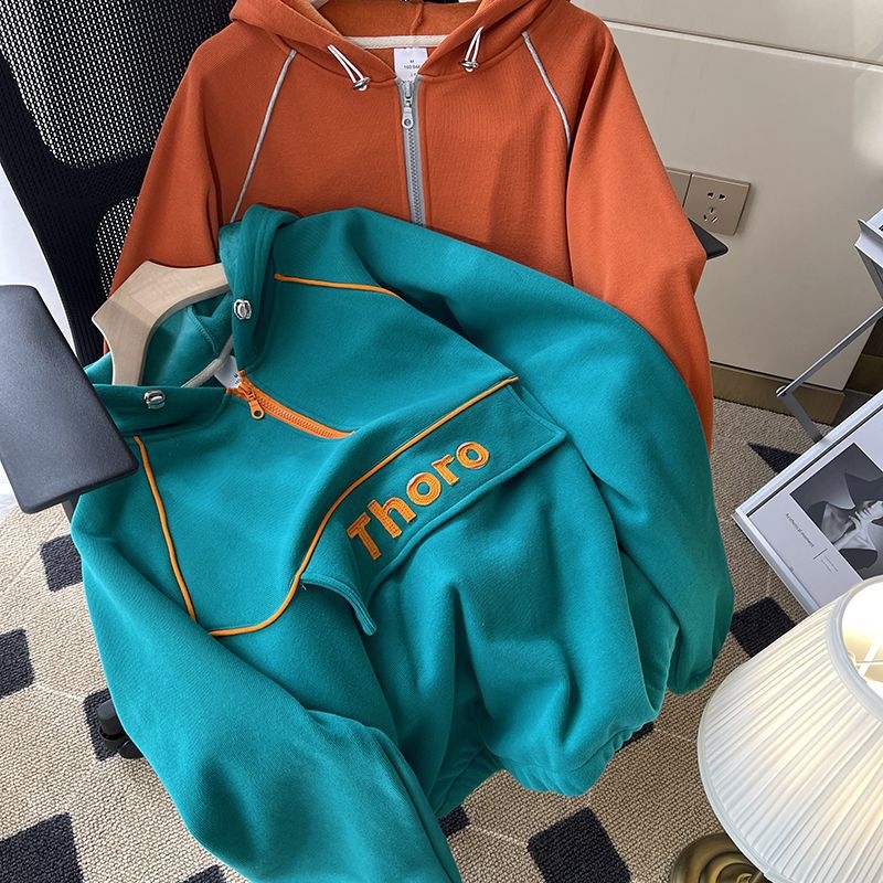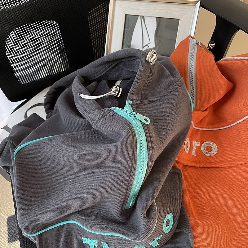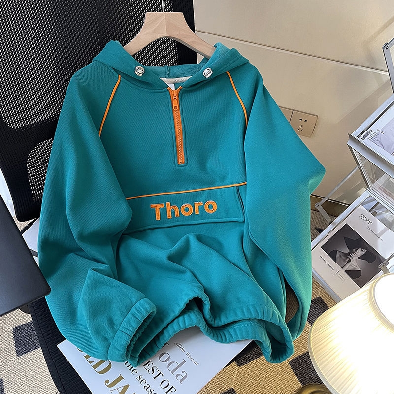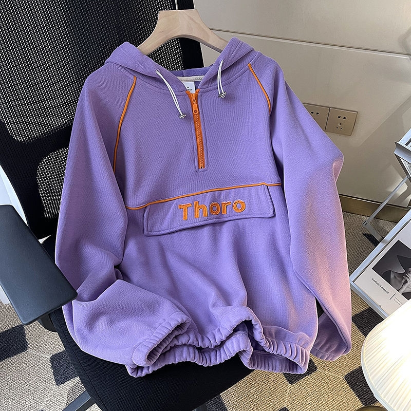 Contrast Color Long Sleeves Hooded Casual Loose Thin Sweatshirt