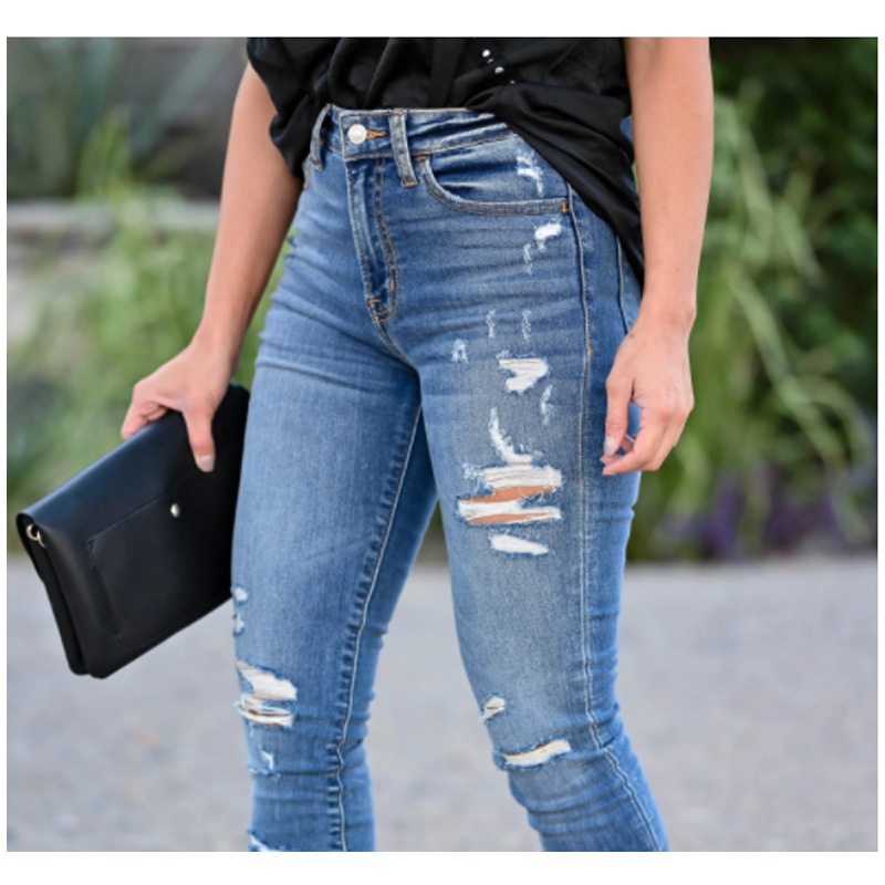 Mid-Waisted All-Match Ripped Skinny Jeans