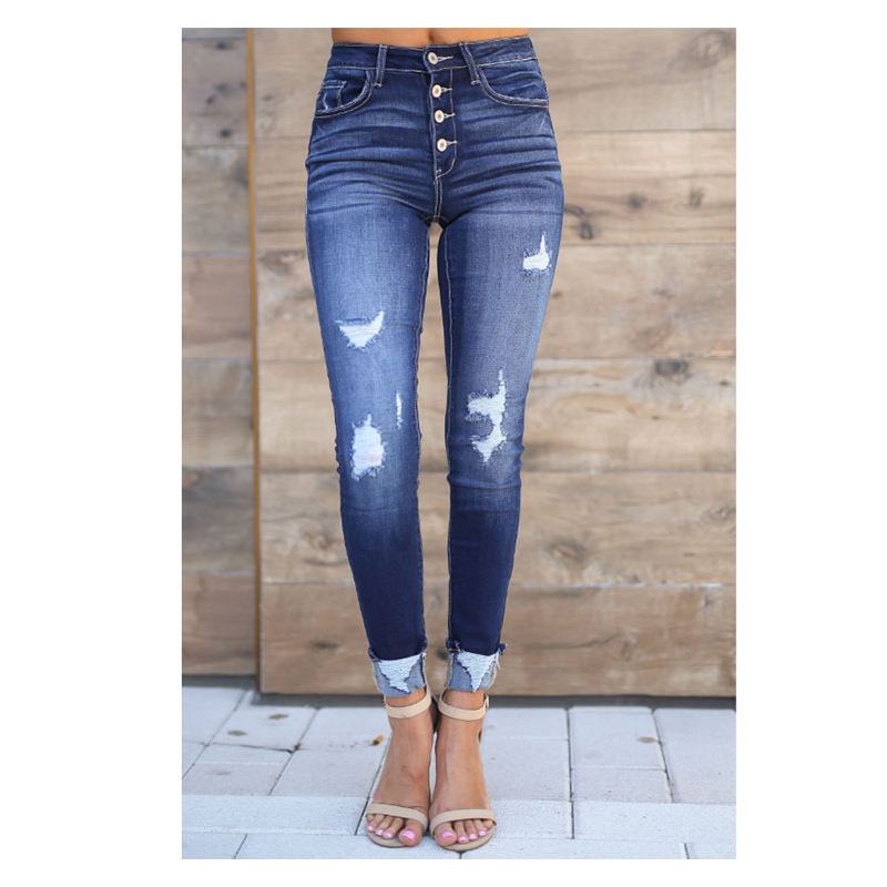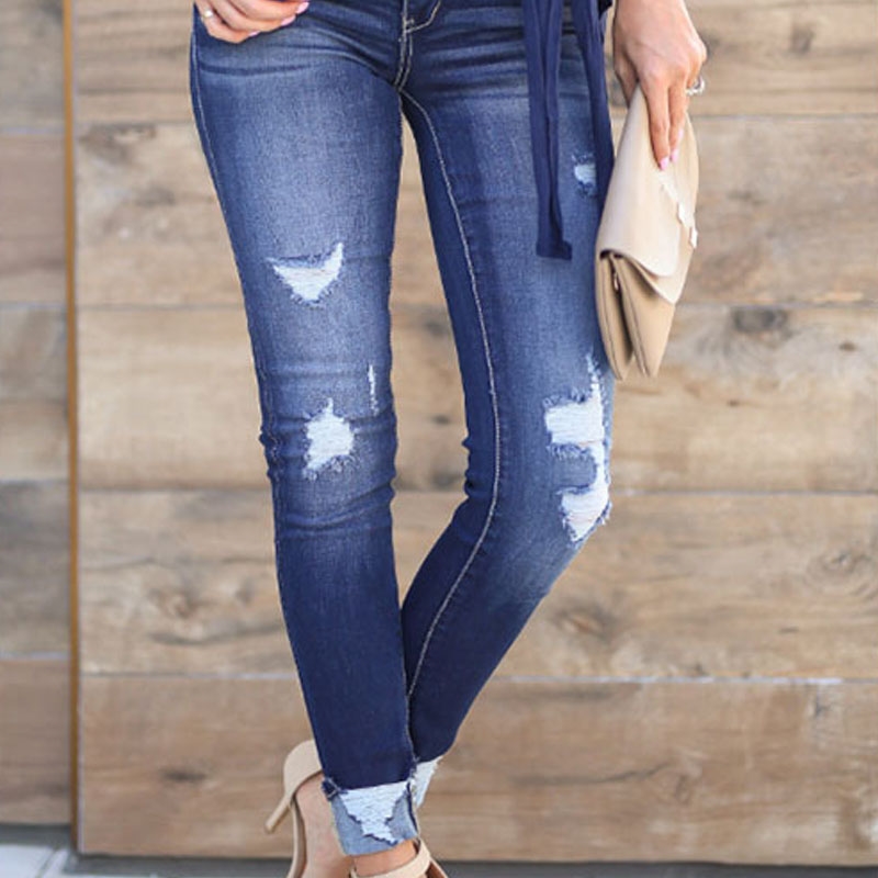 Mid-Waisted Ripped Distressed Skinny Jeans