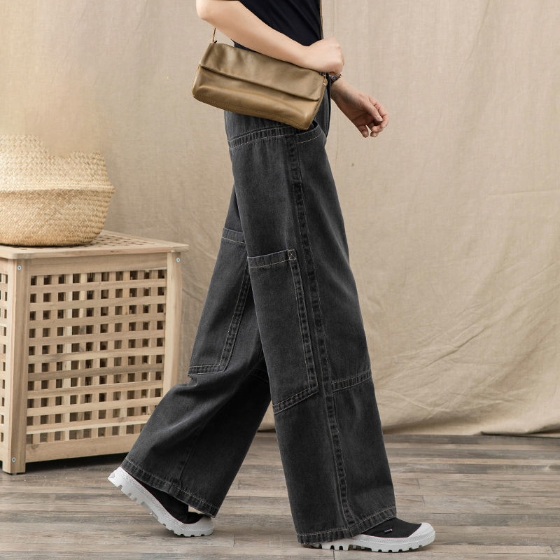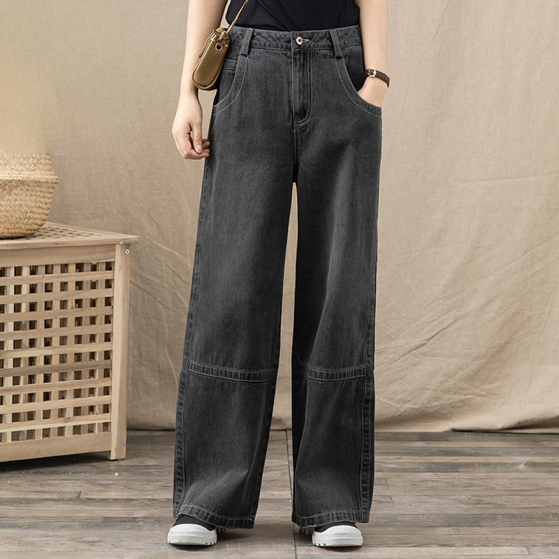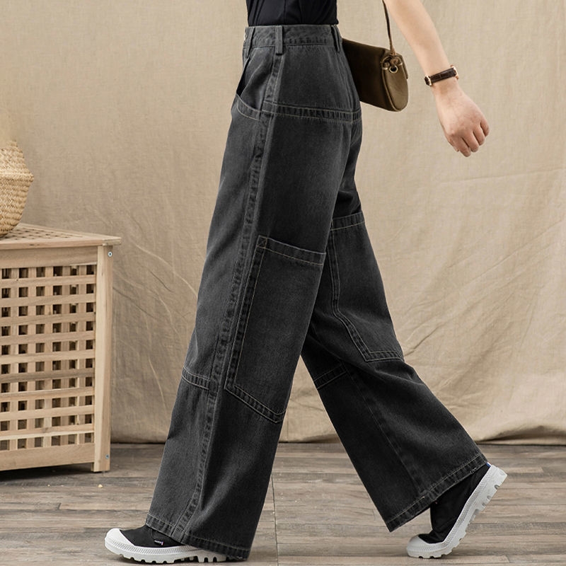 Black Straight Wide Leg Loose Retro Casual Jeans