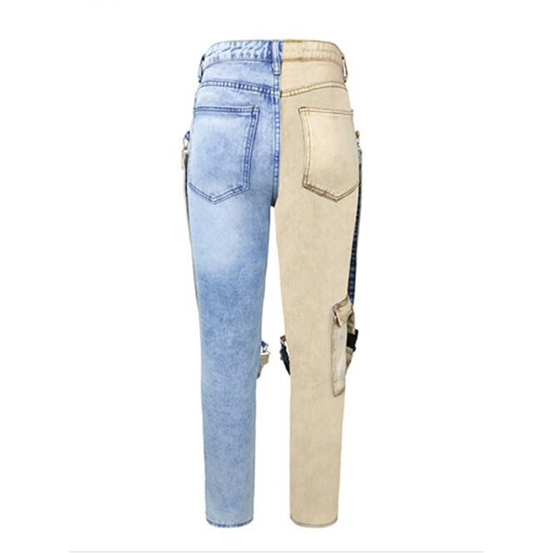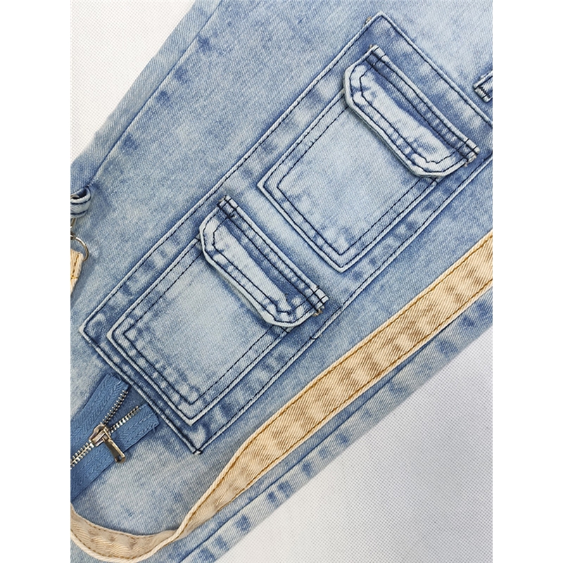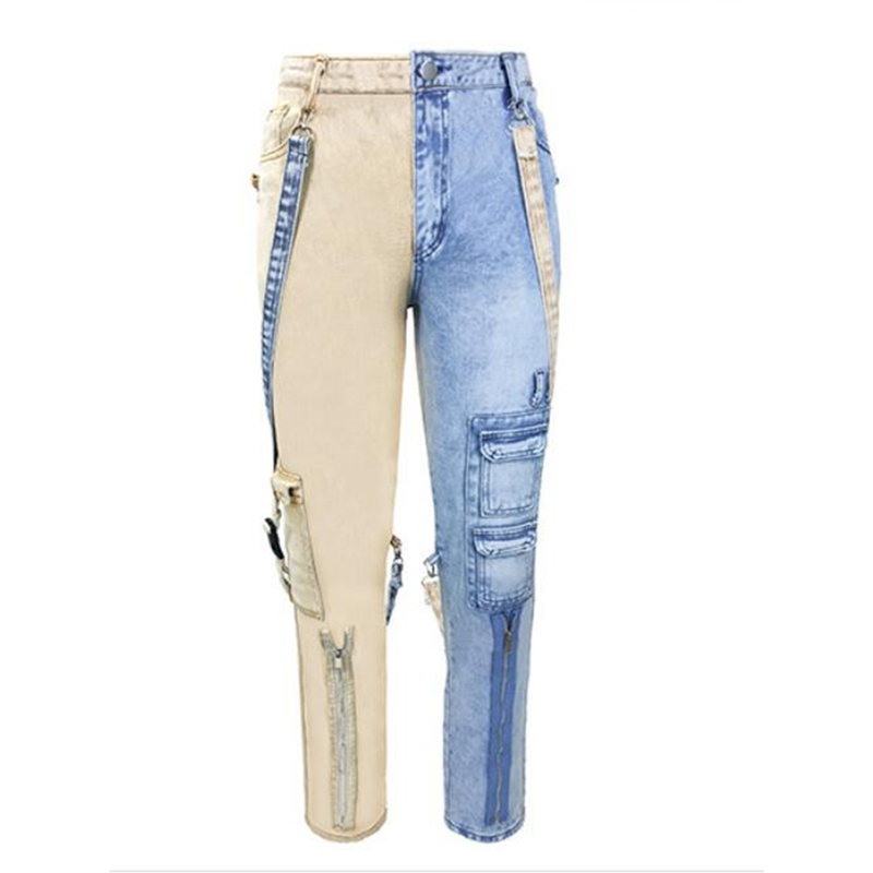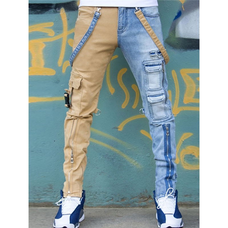 Contrast Zipper Cargo Straight Leg Jeans
